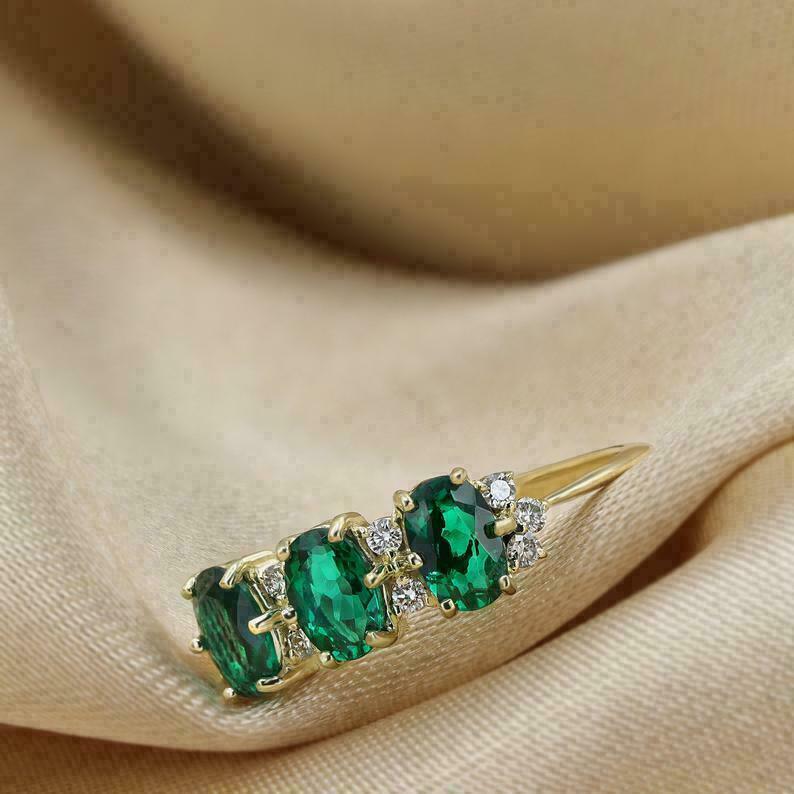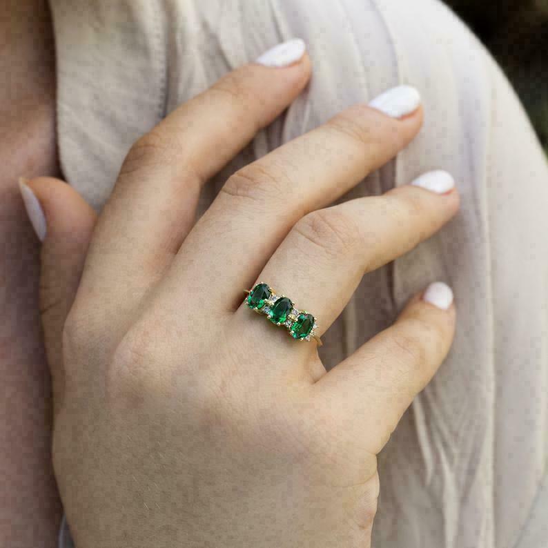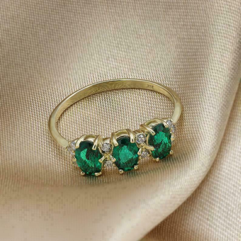 3Ct Oval Schliff Grün Smaragd Diamant Verlobungsring 14K Gelbgold Finish