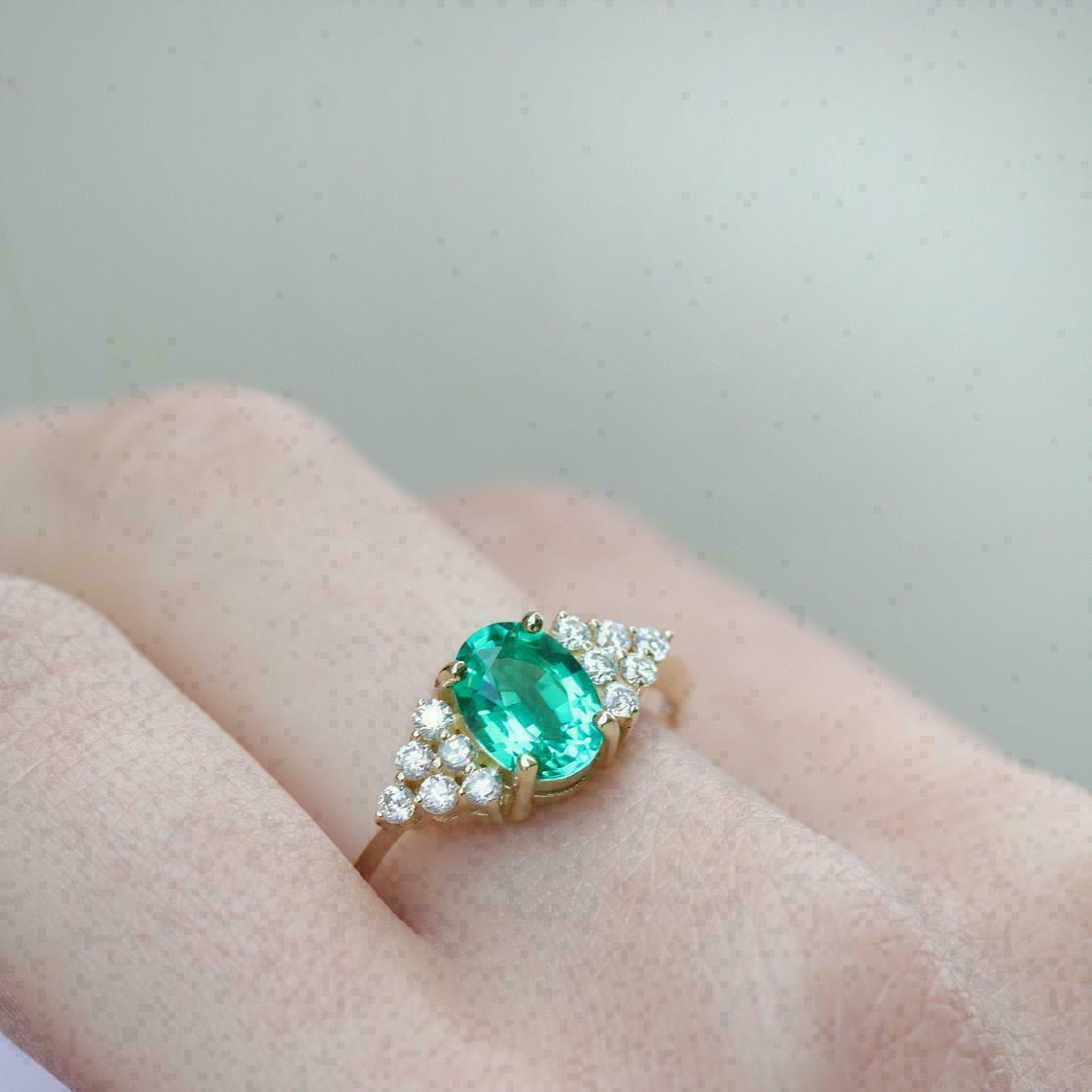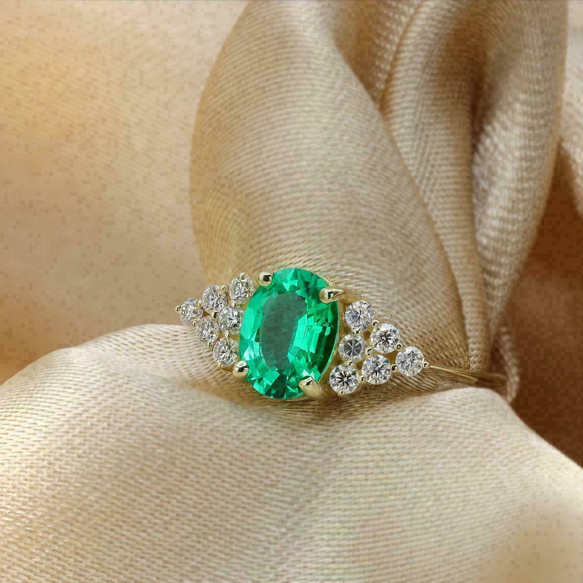 2CT Oval Schliff Grün Smaragd / Diamant Verlobungsring 14K Gelbgold Über
