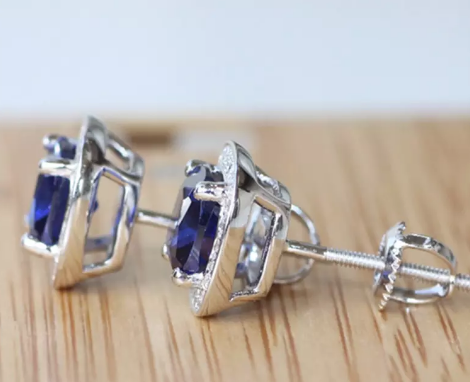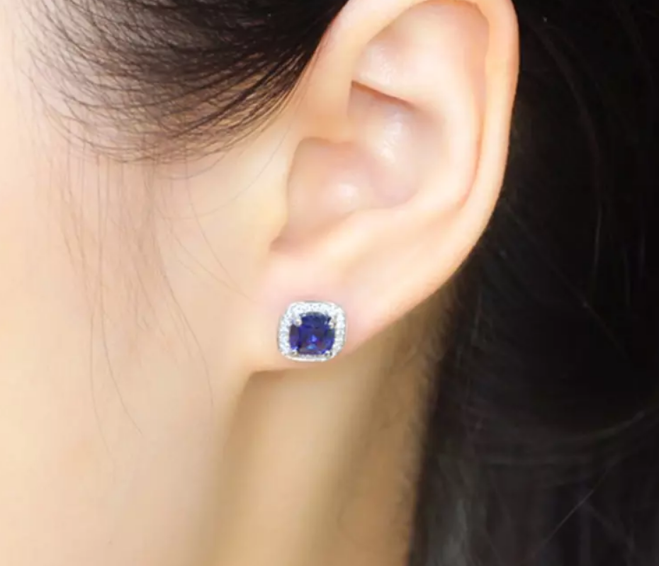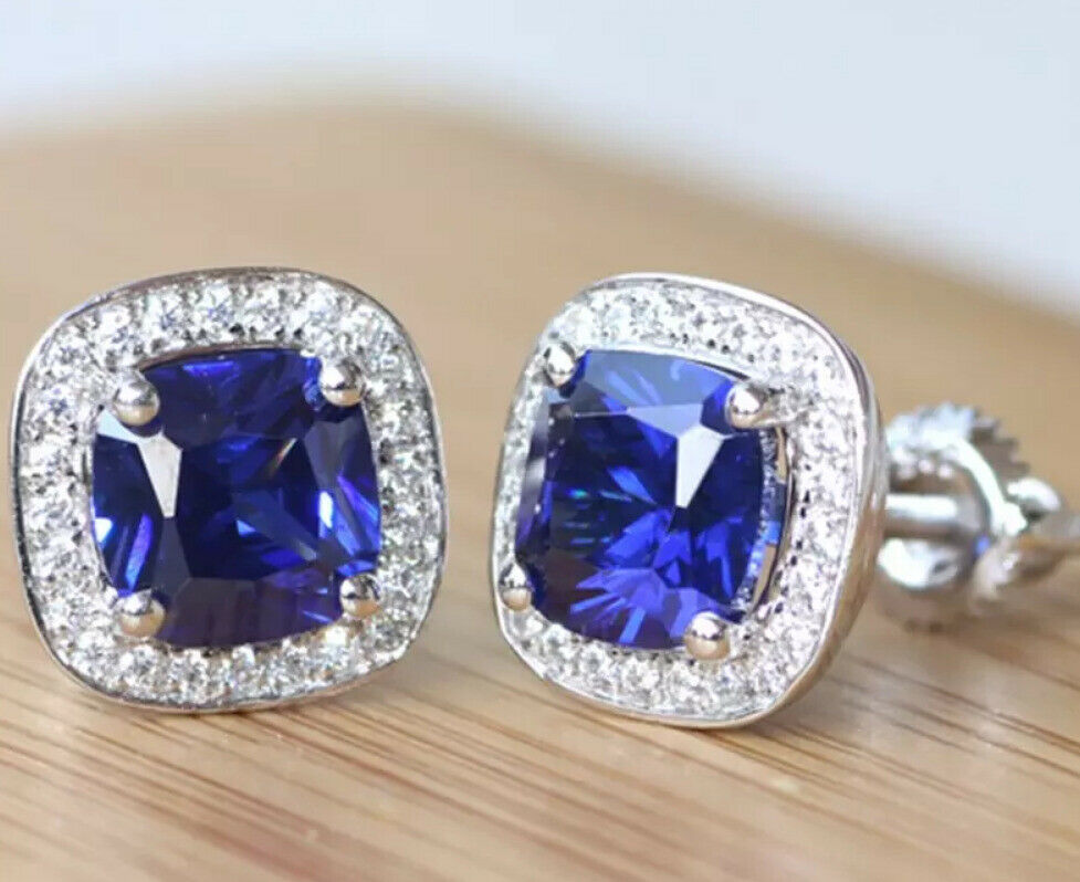 2.50Ct Kissen Schnitt Blauer Saphir Halo Ohrstecker Schöne 14K Weißgold Finish