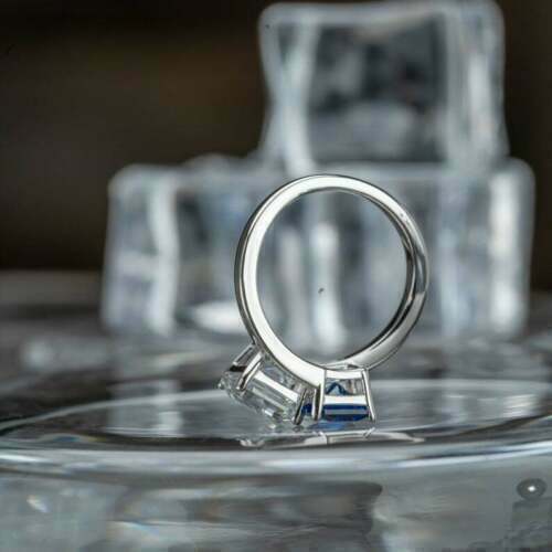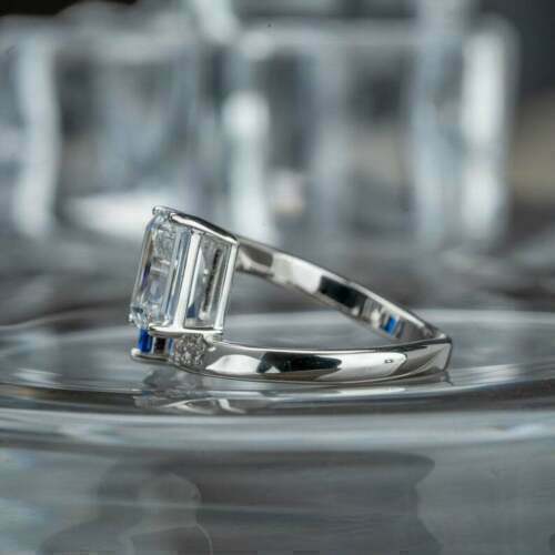 4Ct Corte Esmeralda Zafiro Diamante Mujer Anillo de Compromiso 14K Oro Blanco