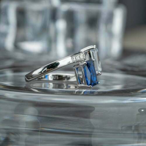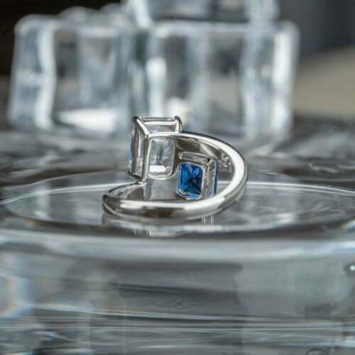 4Ct Corte Esmeralda Zafiro & Diamante Mujer Anillo de Compromiso 14K Oro Blanco