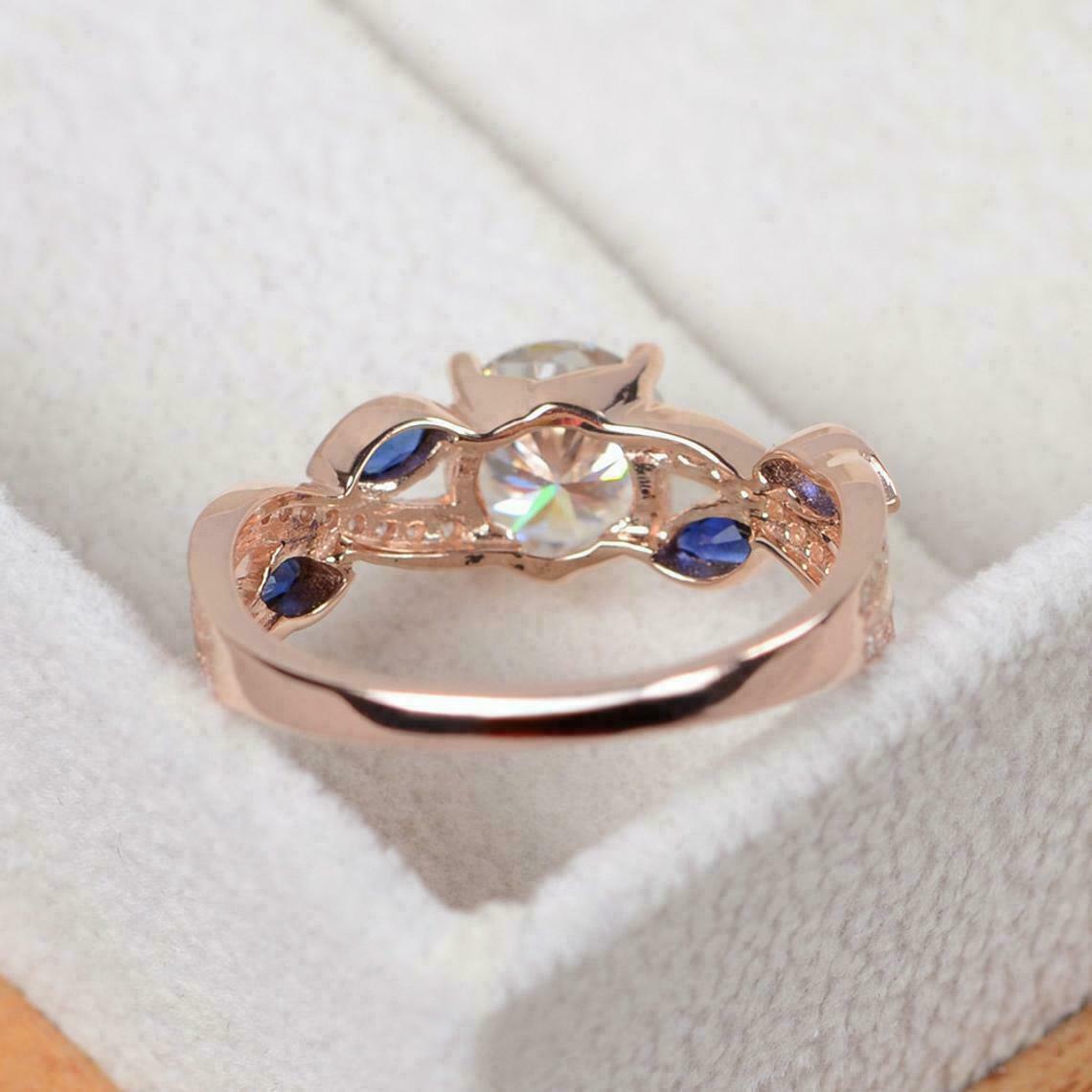 3CT Taglio Rotondo Moissanite E Zaffiro Fidanzamento Anello 14K Oro Rosa Finire