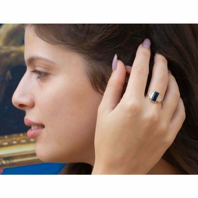 2CT Baguetteschliff Blauer Saphir Verlobung and similar items