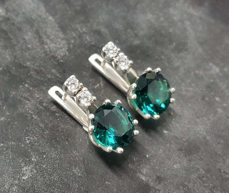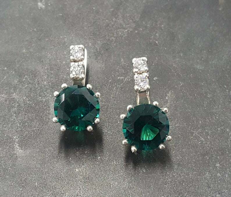 4Ct Superbe Coupe Ronde Vert Émeraude Solitaire Boucle Oreilles 14K Blanc or Sur
