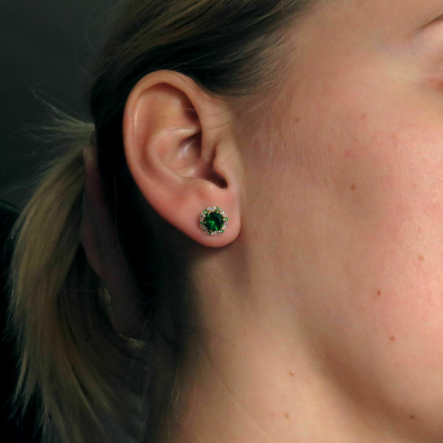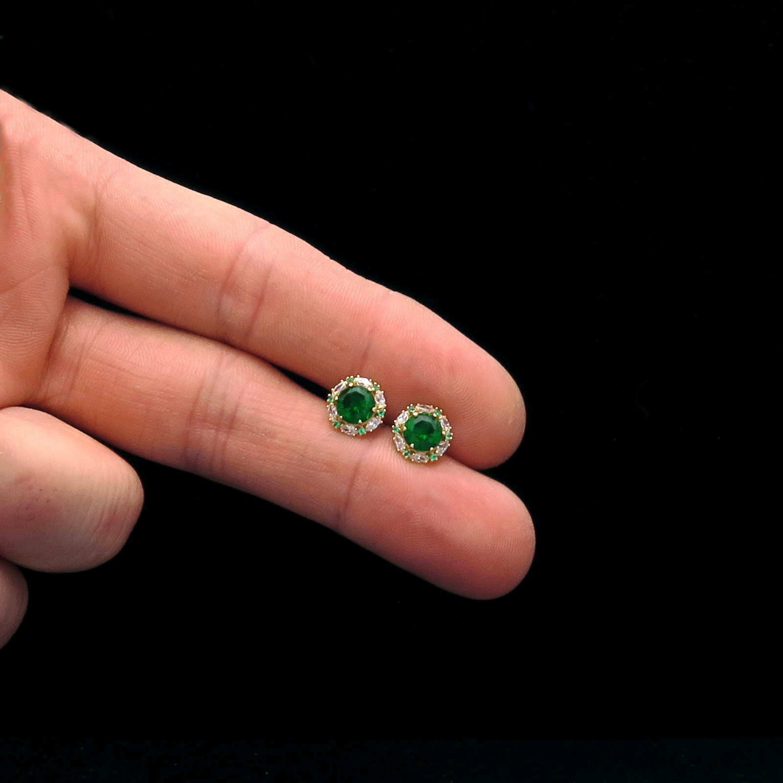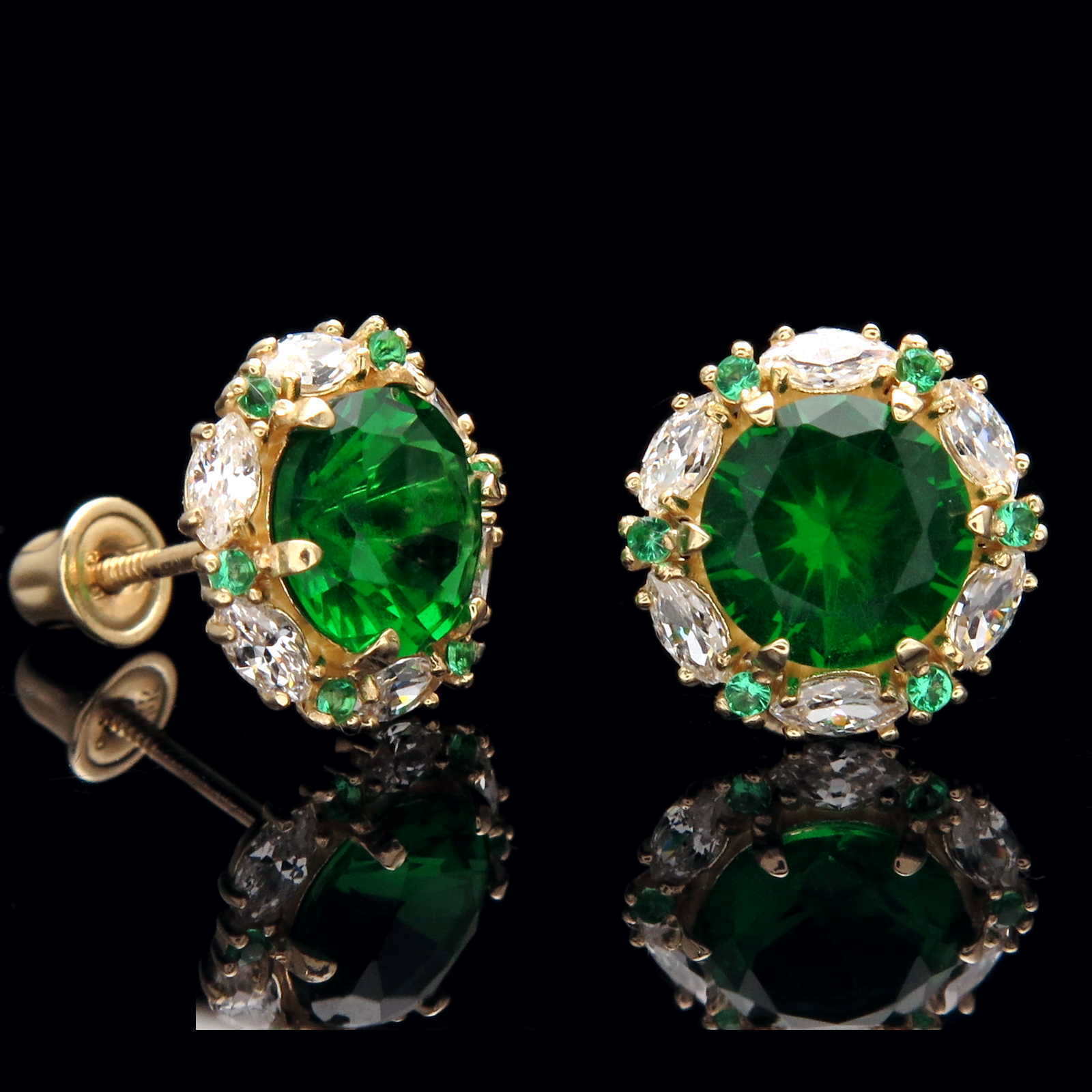 2Ct Grün Smaragd Halo Marquise Diamant Ohrstecker 14k Gelbgold Finish