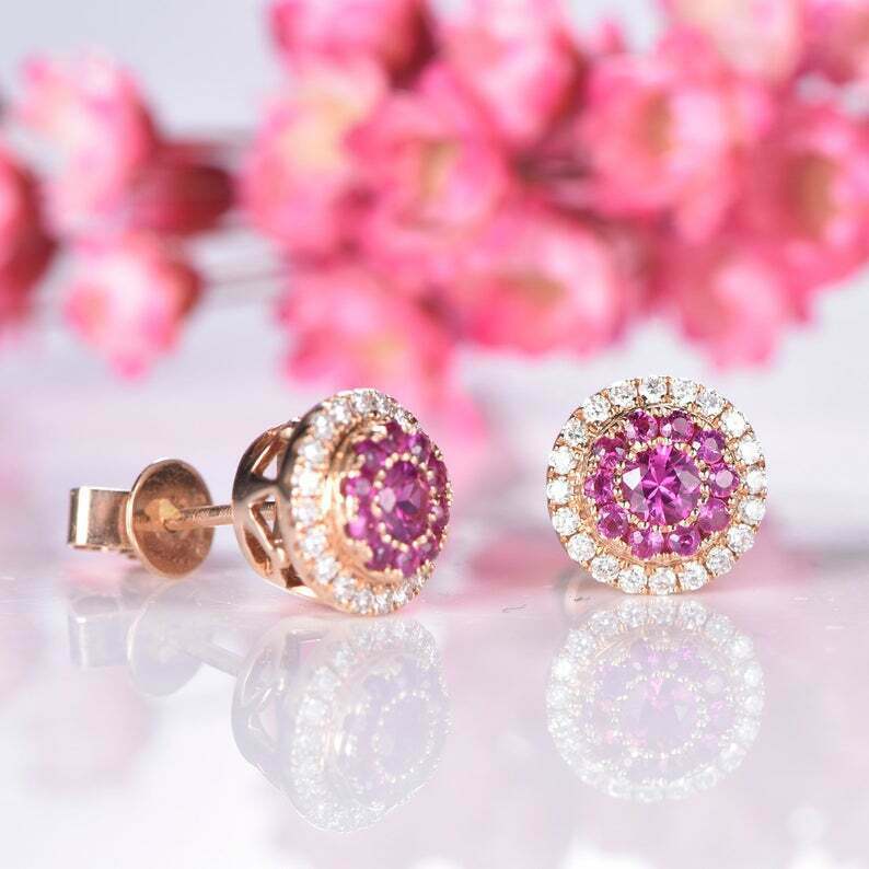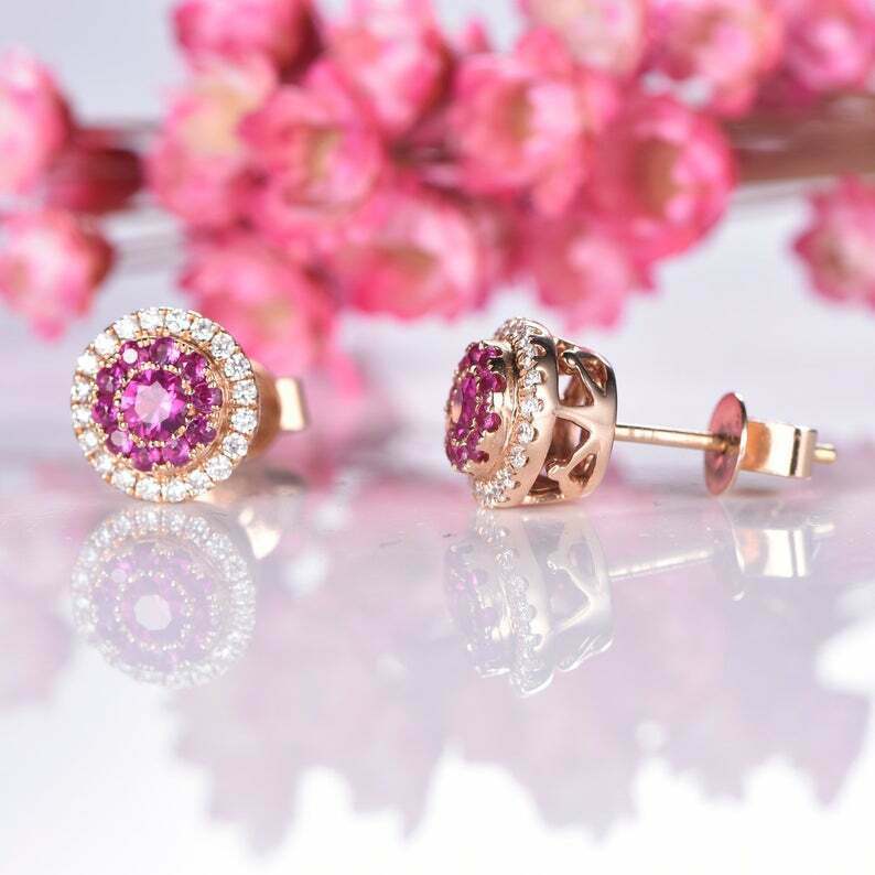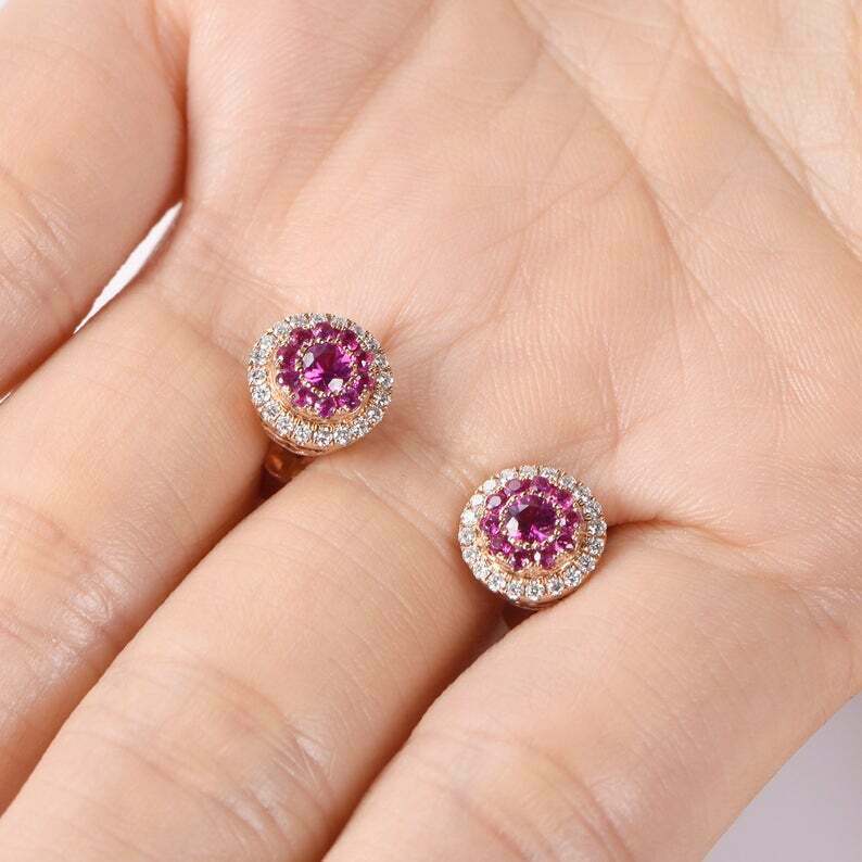 2.20Ct Coupe Ronde Améthyste Halo Boucles D'Oreilles 14K Finition or Rose