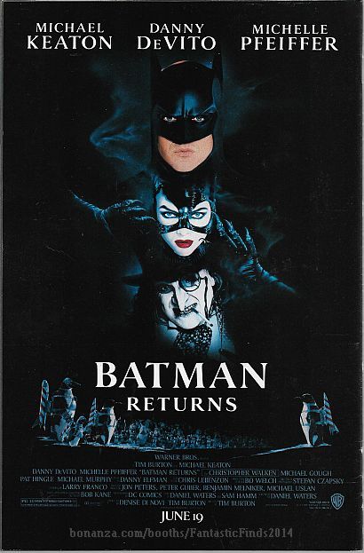 Description: Original cover price: $3.95. Written by Dennis O'Neil, with pencils by Steve Erwin and inks by Josรฉ Luis Garcรญa-Lรณpez. Cover art by Dave Dorman. This standard format one-shot is an adaptation of Tim Burton's 1992 Batman Returns feature film, which starred Michael Keaton as Bruce Wayne/Batman, Michelle Pfeiffer as Catwoman, Danny DeVito as the Penguin, and Michael Gough as Alfred. 083021-083021P