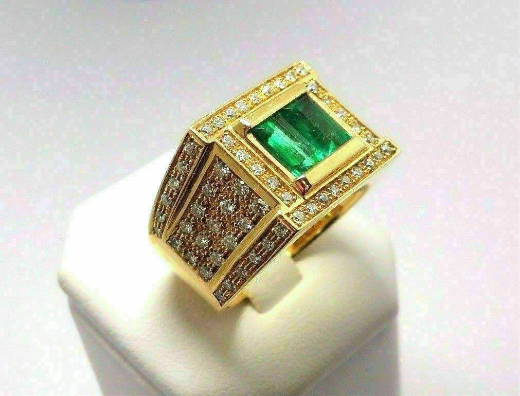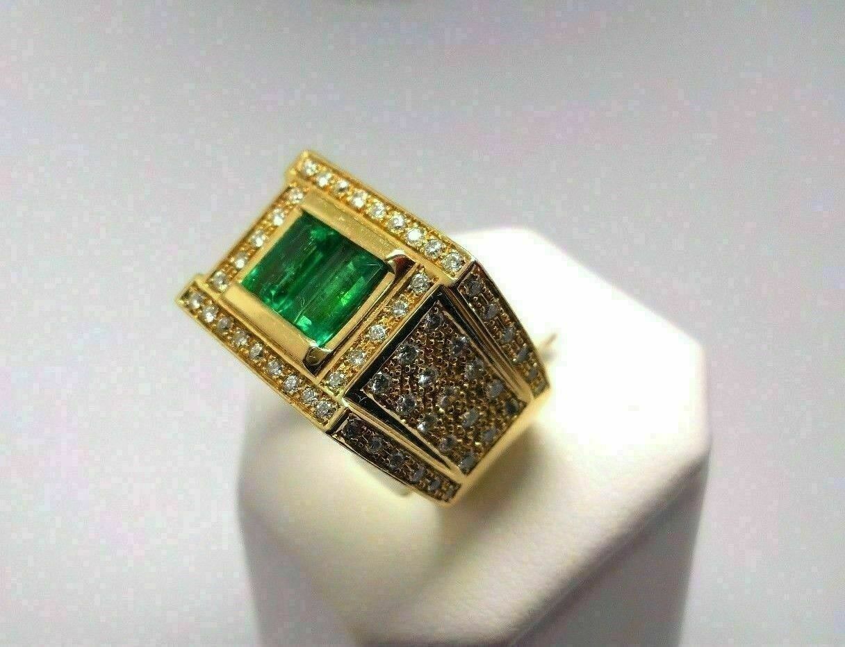 2.50Ct Smaragd Schnitt Smaragd Herren Verlobungsring 14K Gelbgold Über