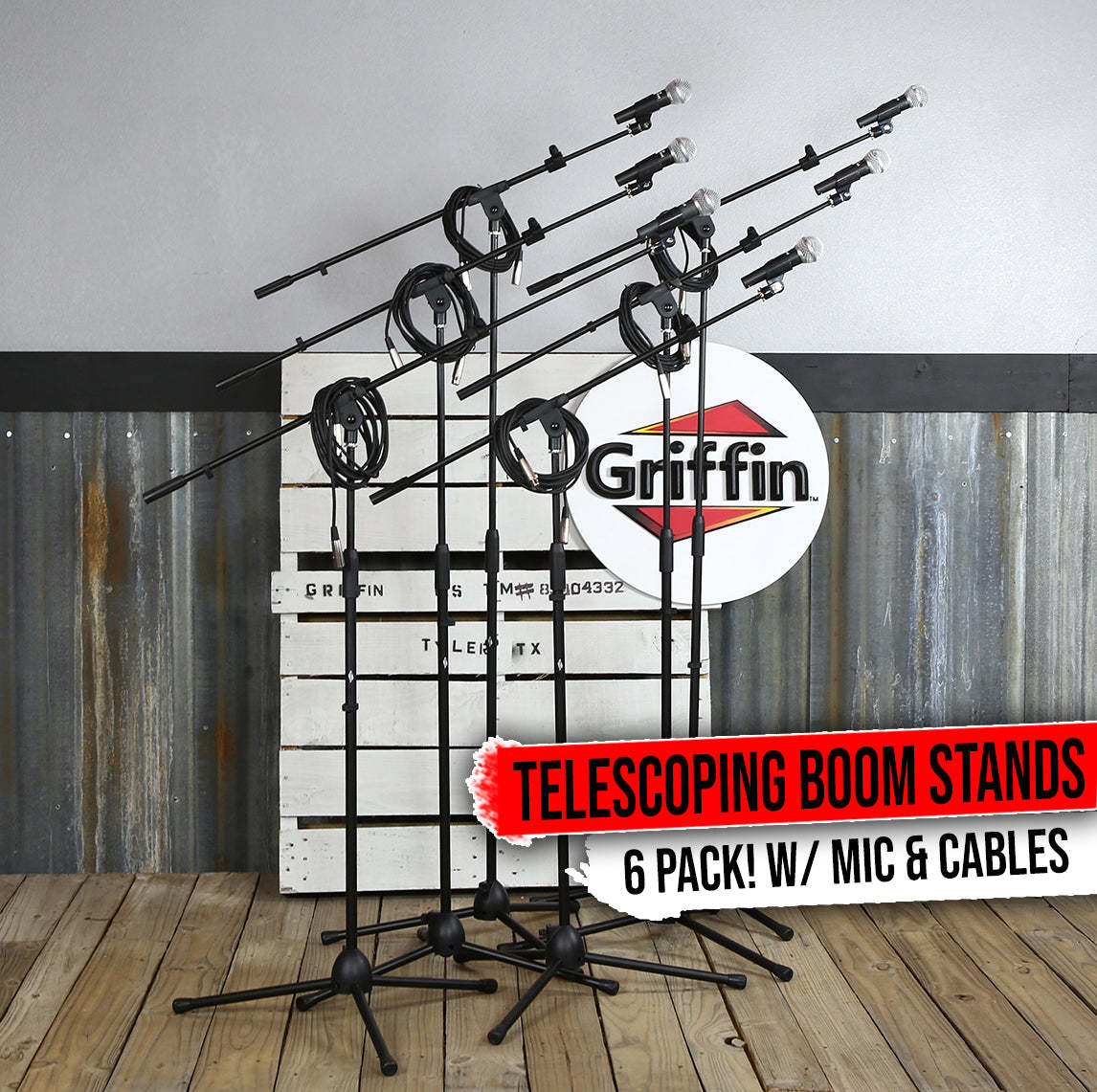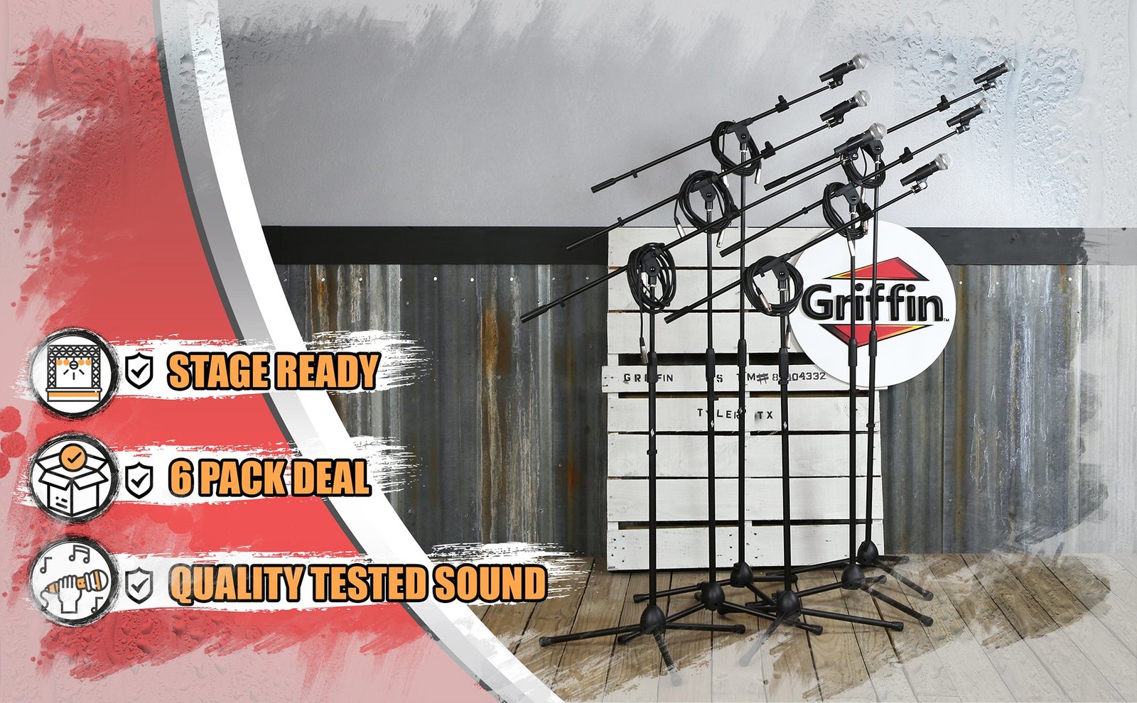 Microphone Boom Stand (GRIFFIN 6 Pack) with Cardioid Vocal Microphones & XLR Mic