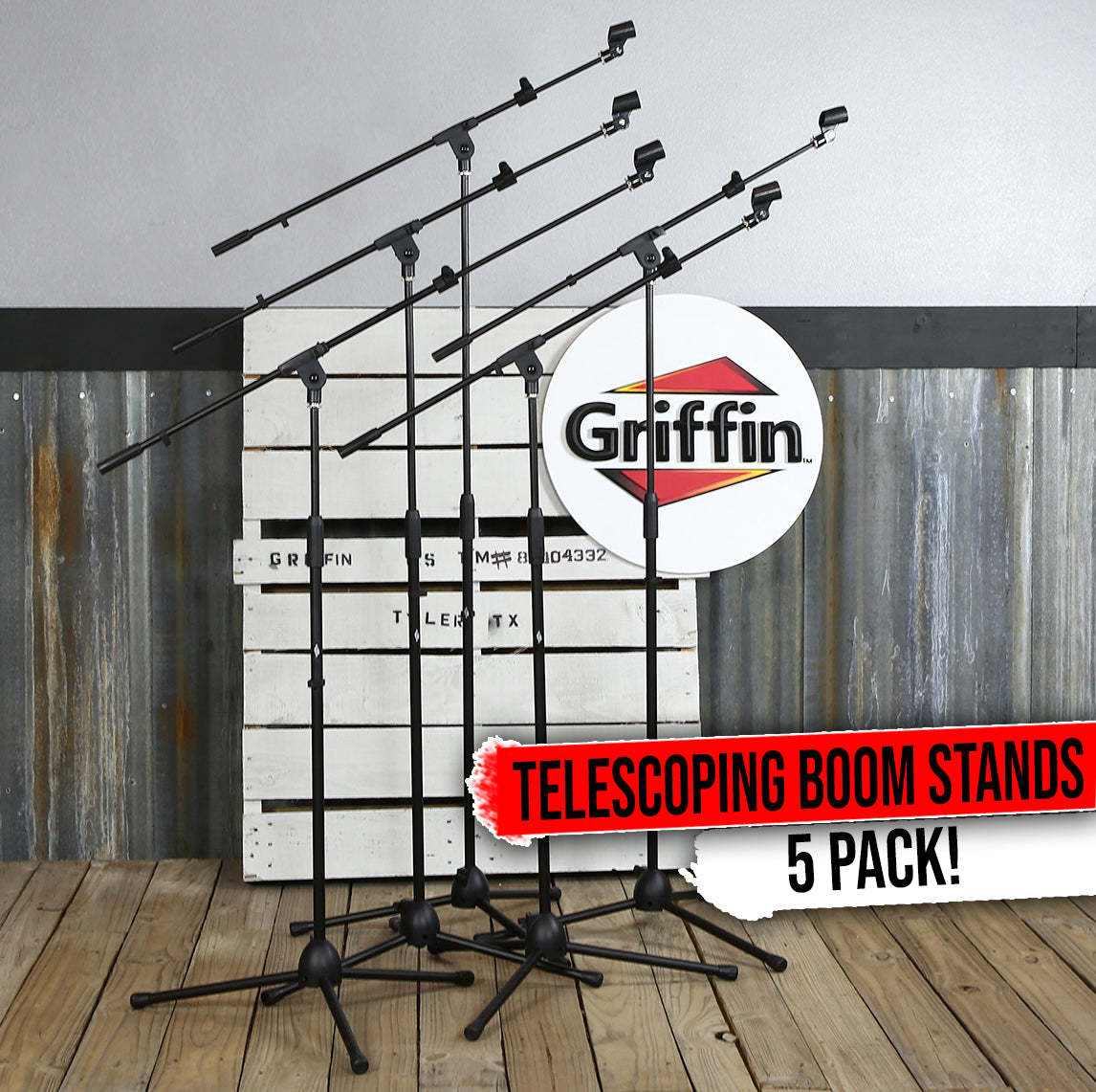 Microphone Boom Stand with Telescopic Arm (Pack of 5) by GRIFFIN | Adjustable Ho