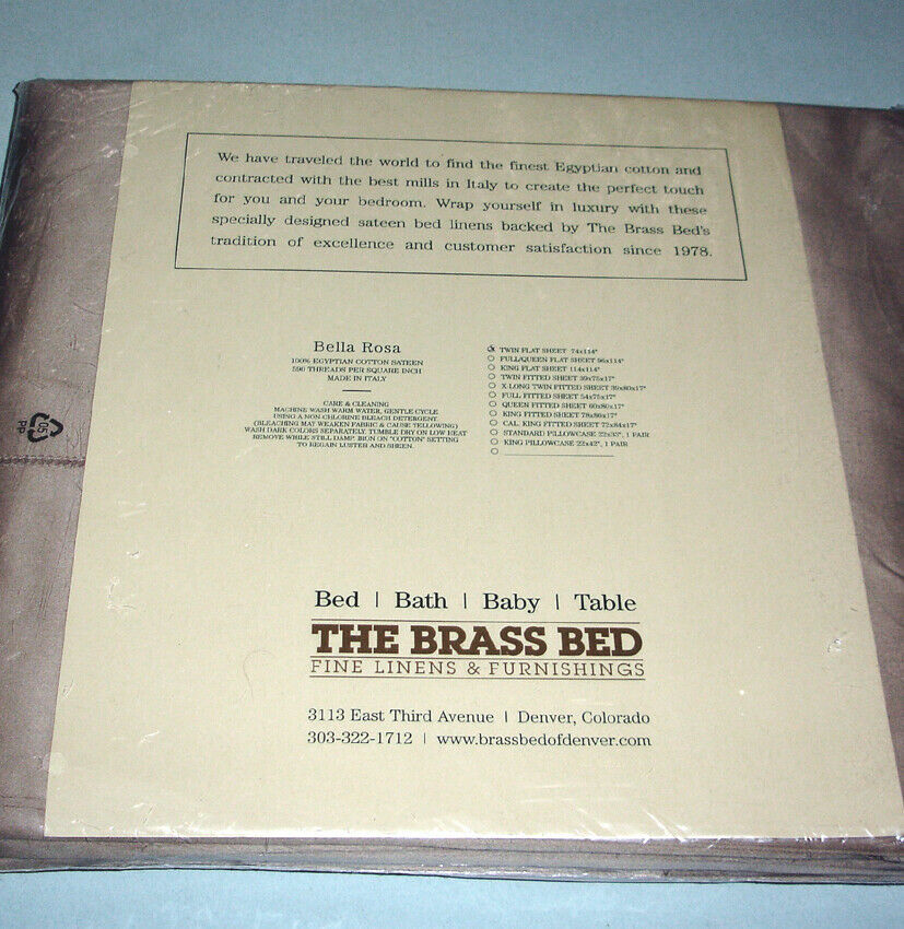 The Brass Bed Bella Rosa/Sferra Twin Flat Sheet Dk Khaki 590TC Cotton Sateen New