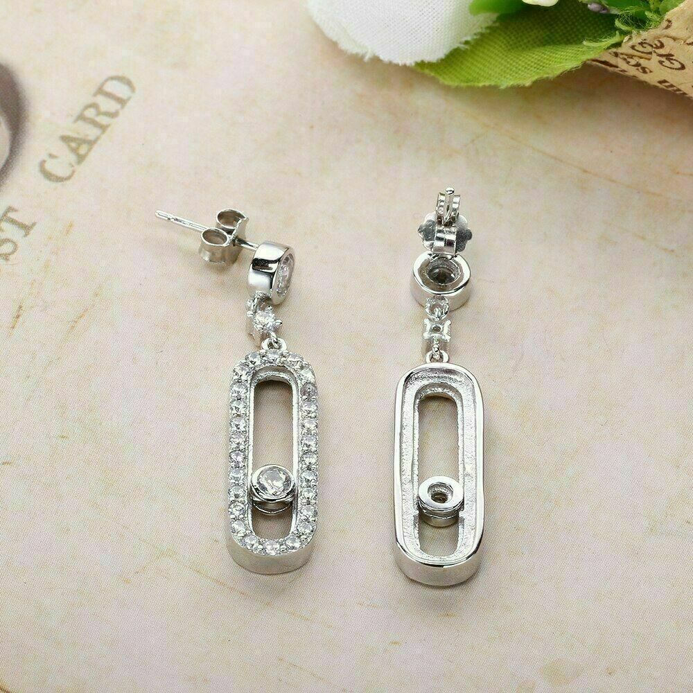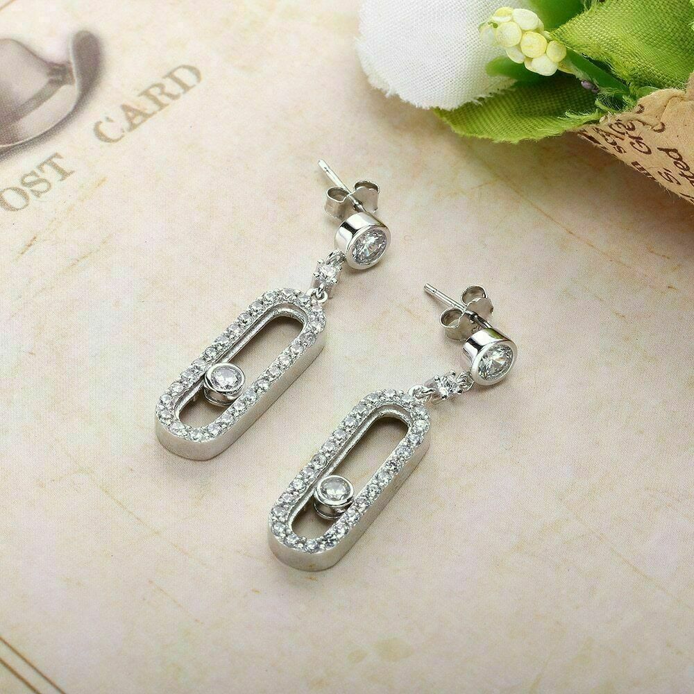 1.50Ct Corte Redondo Diamante Gota & Pendientes Largos 14K Acabado en Oro Blanco