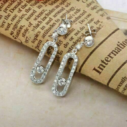 1.50Ct Corte Redondo Diamante Gota Pendientes Largos 14K Acabado en Oro Blanco