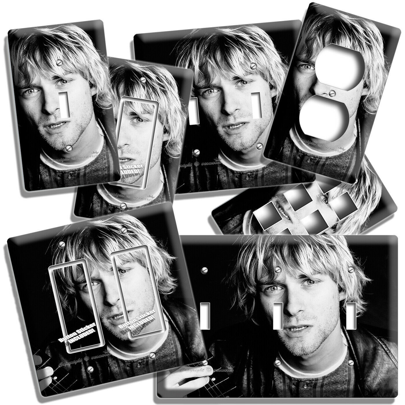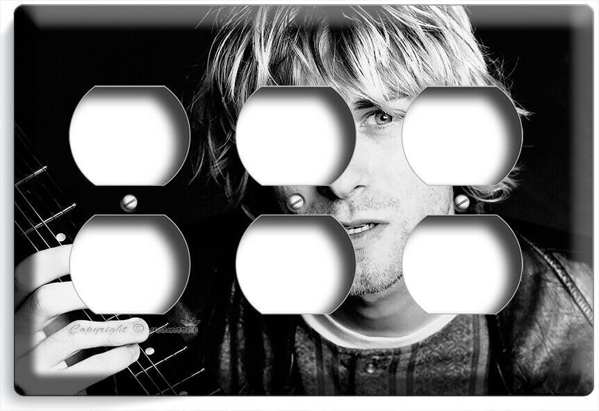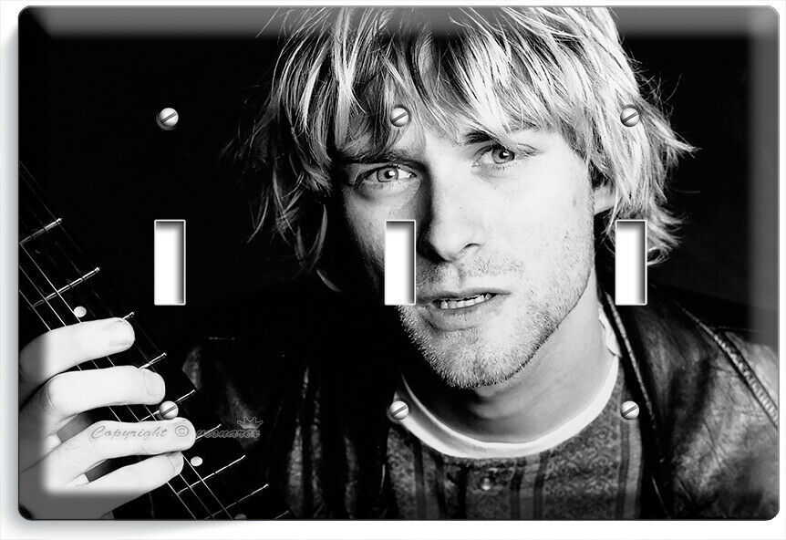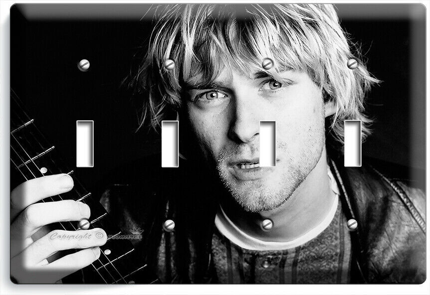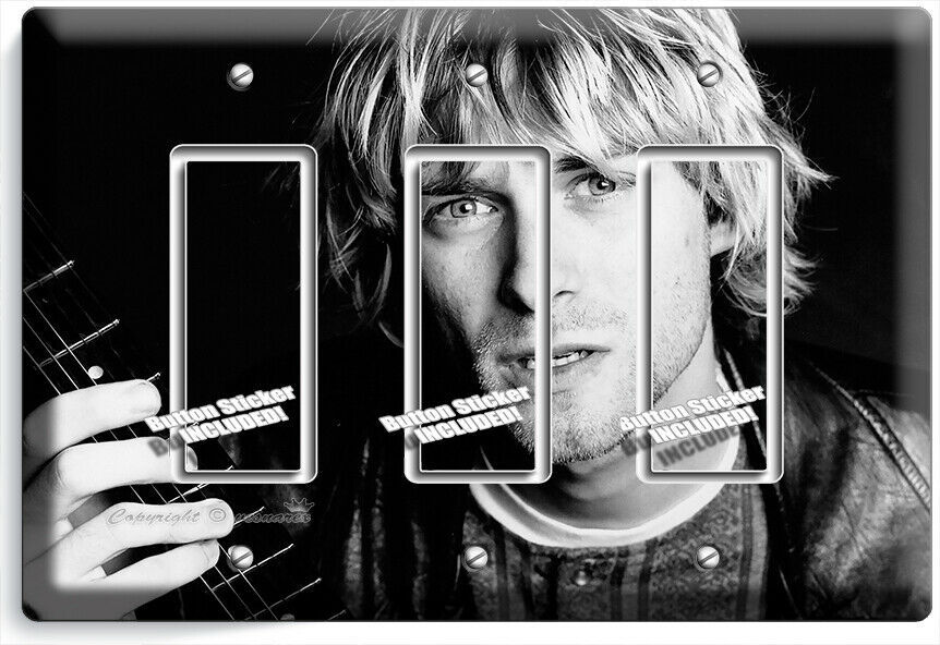 KURT COBAIN ROCK MUSICIAN BLACK AND WHITE LIGHT SWITCH OUTLET WALL PLATES HD ART