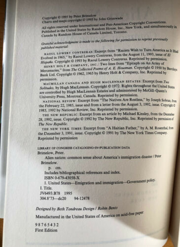 Alien Nation By Peter Brimelow - First and 50 similar items