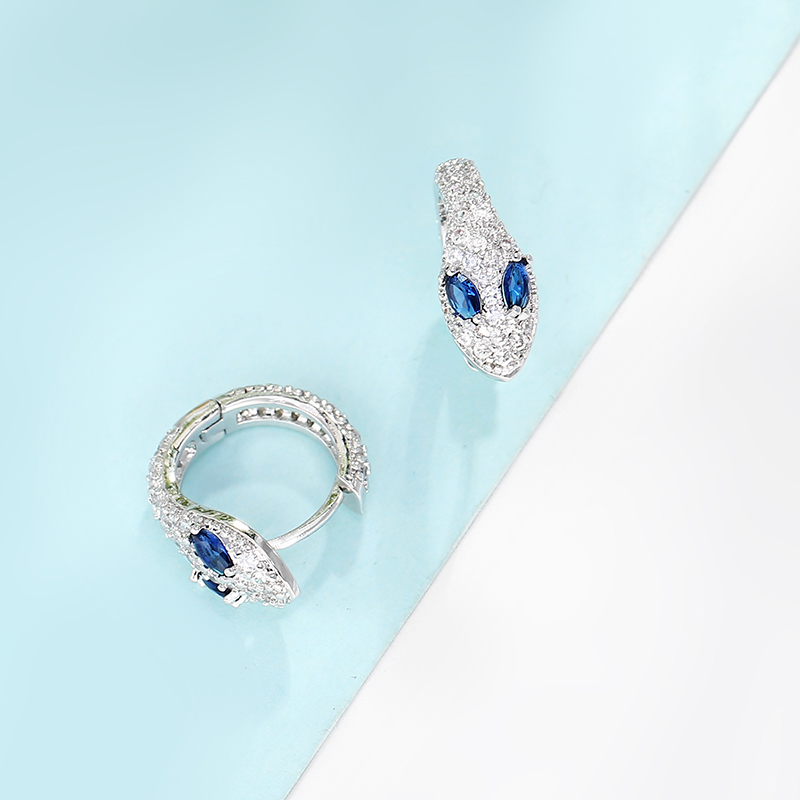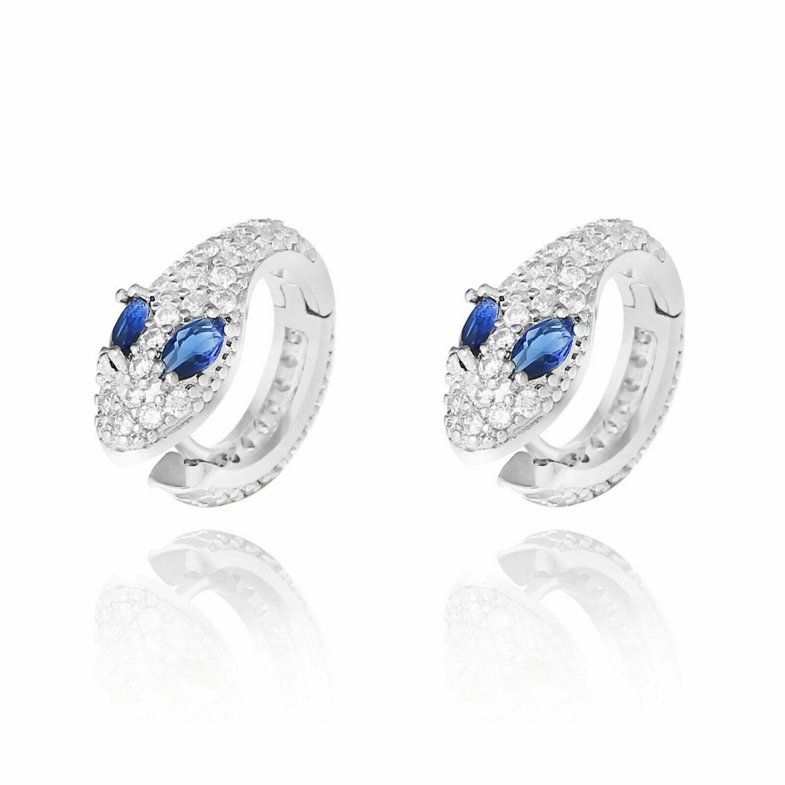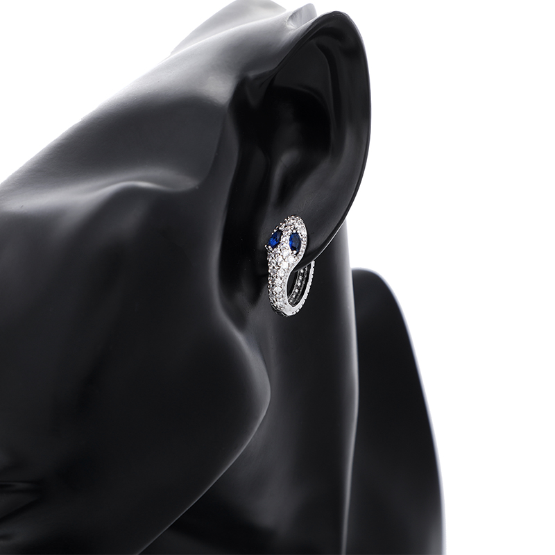 1.50Ct Corte Marquesa Zafiro Azul Serpiente Aro Pendientes En 14K Oro Blanco