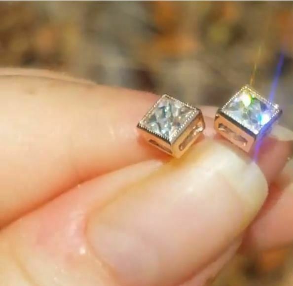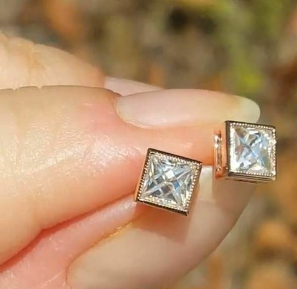 4Ct Prinzessin Schnitt VVS1 Diamant Solitaire Ohrstecker 14K Weiss Gold Flosse