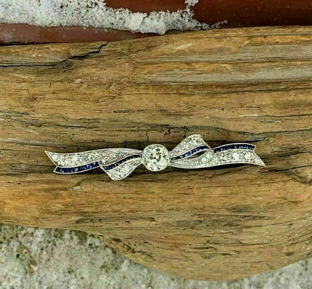 Halloween Spécial -2Ct Diamond&blue Saphir Charme Noeud Broche 14k Whitegoldover