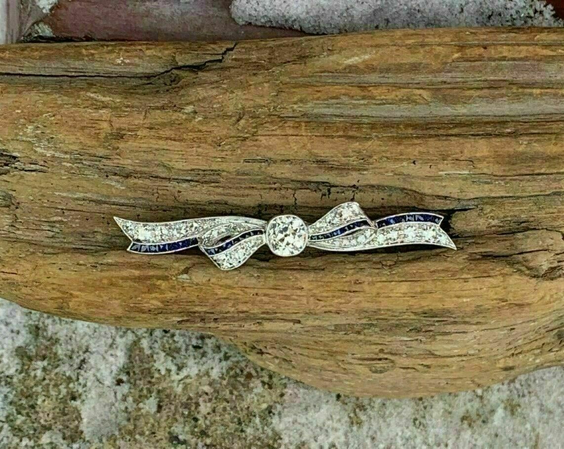 Halloween Spec -2Ct Diamond&blue Saphir Charm Schleife Anstecknadel Brosche 14k