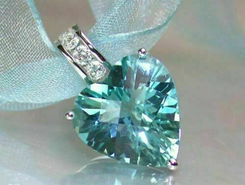 Halloween Speciale - 3Ct Taglio a Cuore Acquamarina Ciondolo 14K Oro Bianco