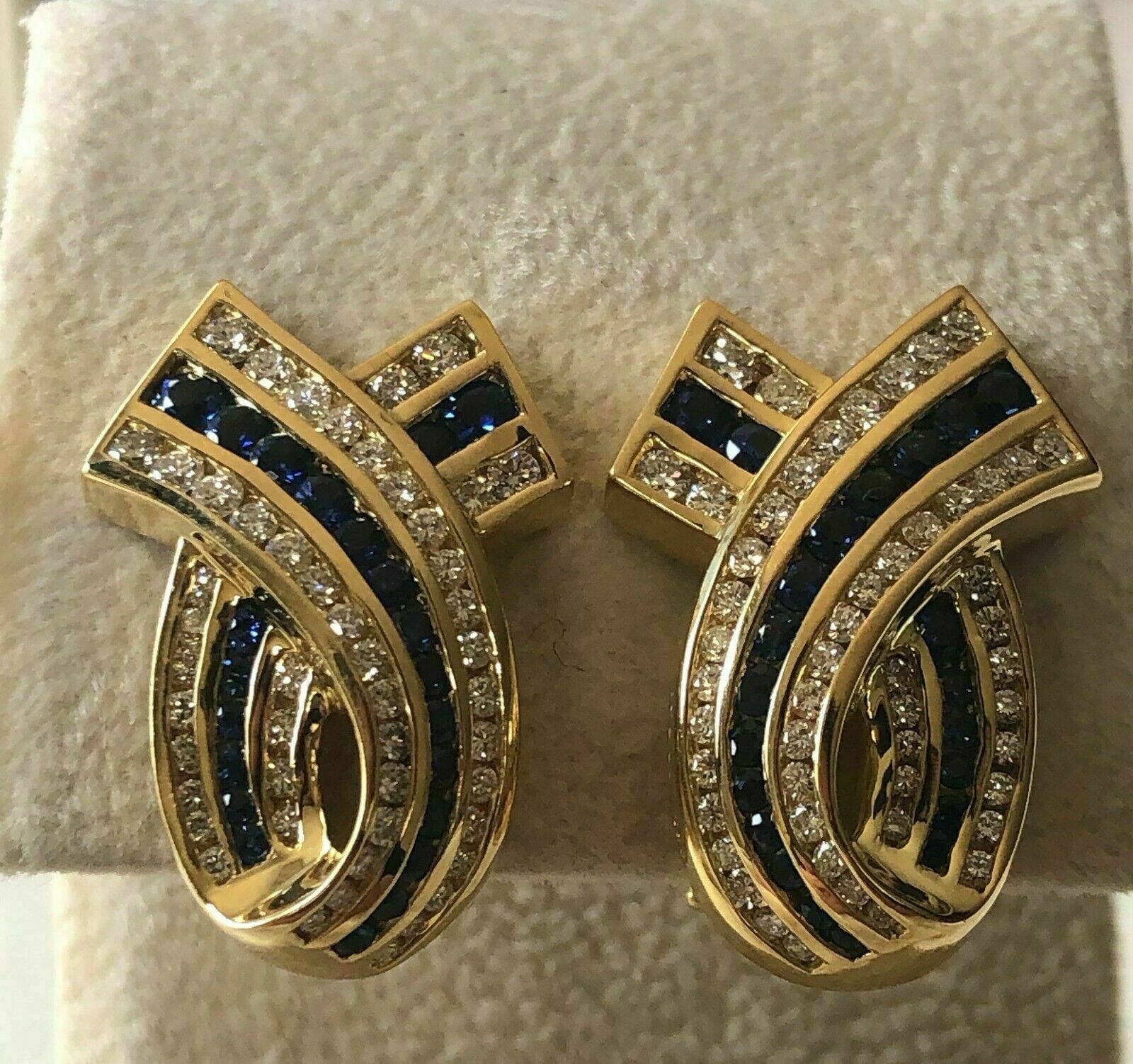 Halloween Spécial - 3Ct Coupe Ronde Saphir Bleu Oreilles 14k Finition or Jaune