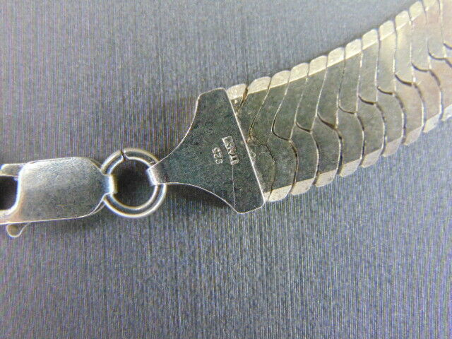 FOR SALE IS THIS LOVELY VINTAGE ESTATE STERLING SILVER HERRINGBONE NECKLACE THAT WAS MADE IN ITALY. THE NECKLACE MEASURES 20 1/8" LONG BY 1/2" WIDE, AND WEIGHS 43.1g. WOULD MAKE A GREAT GIFT FOR THAT SPECIAL SOMEONE. ANY QUESTIONS PLEASE DO NOT HESITATE TO ASK. BE SURE TO CHECK OUT SOME OF MY OTHER GREAT ITEMS UP FOR SALE. THANK YOU.