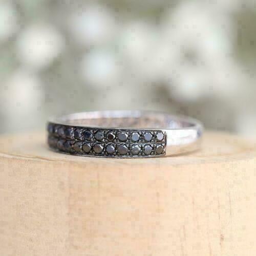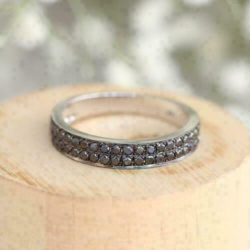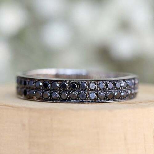 Halloween SPECIAL1.50Ct Diamant Noir Deux Rangs Bague Mariage 14K or Blanc Fini