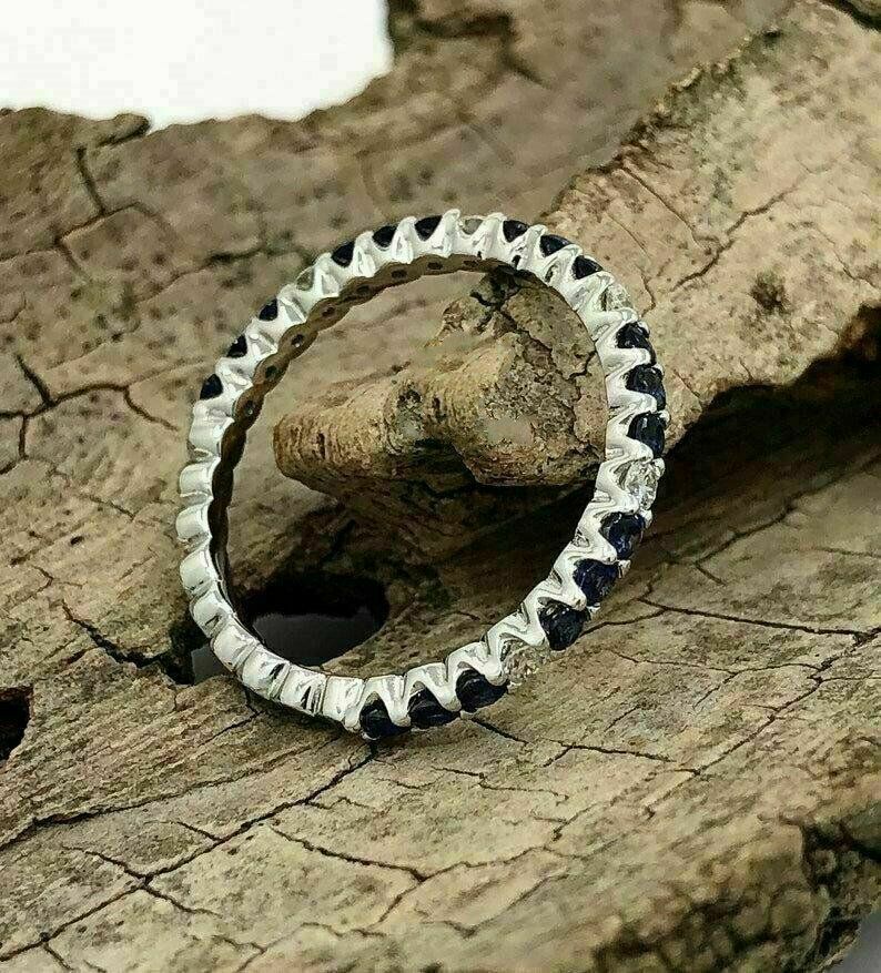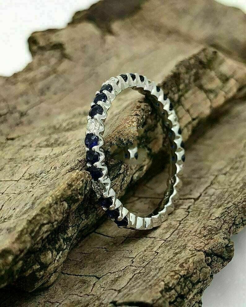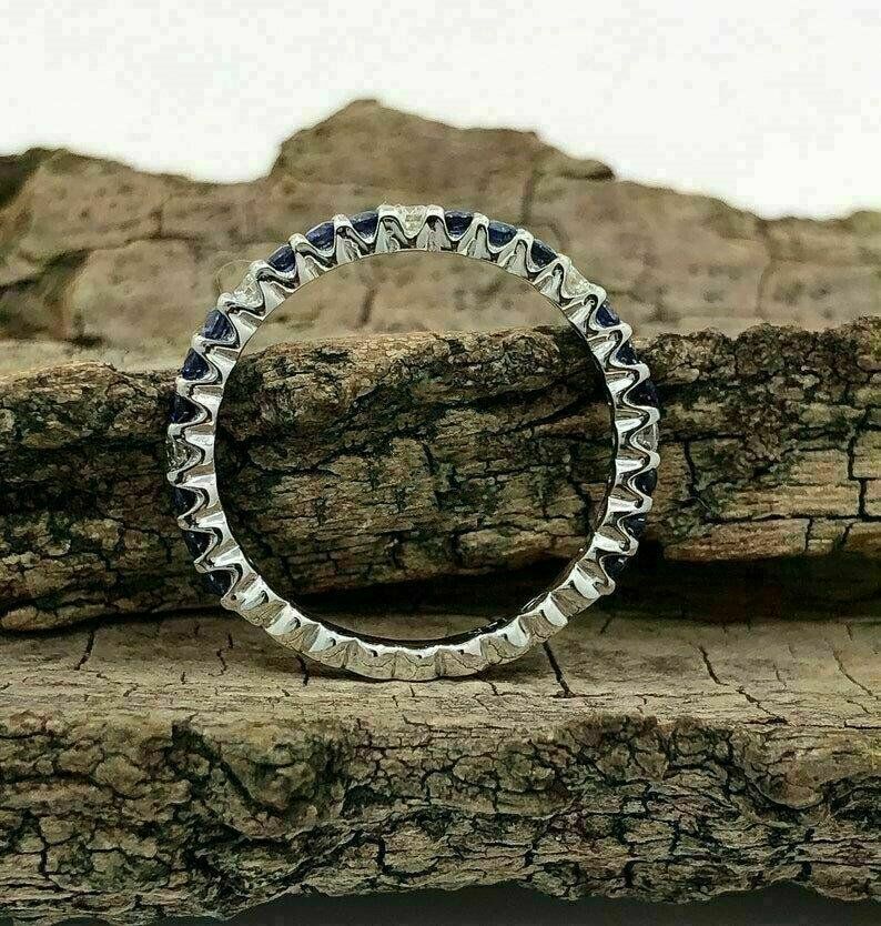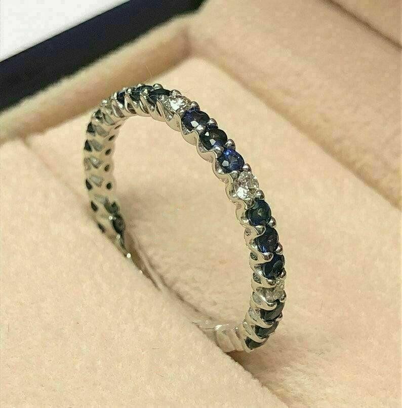 Halloween Spécial - 1.50Ct Saphir Bleu Mariage Bande 14K or Blanc Finition