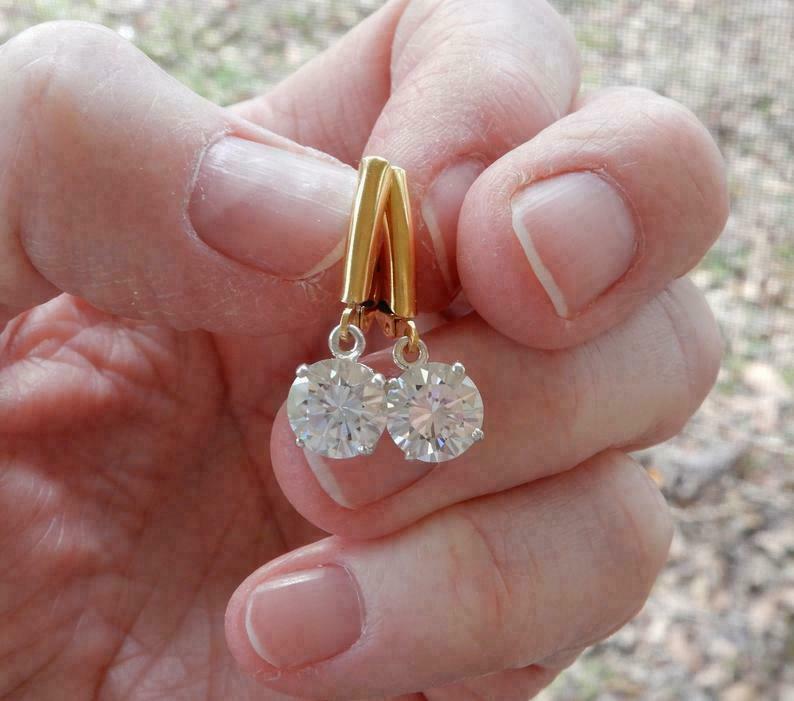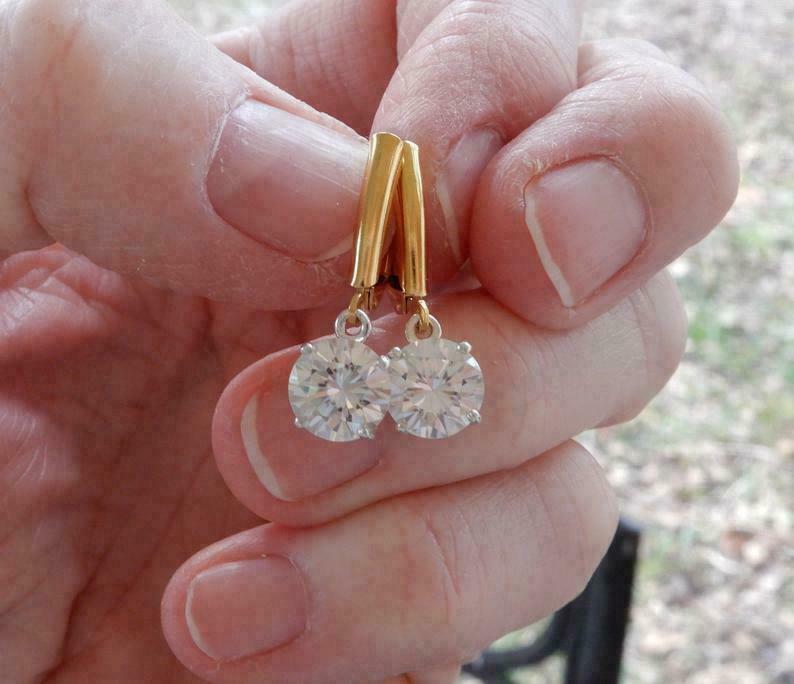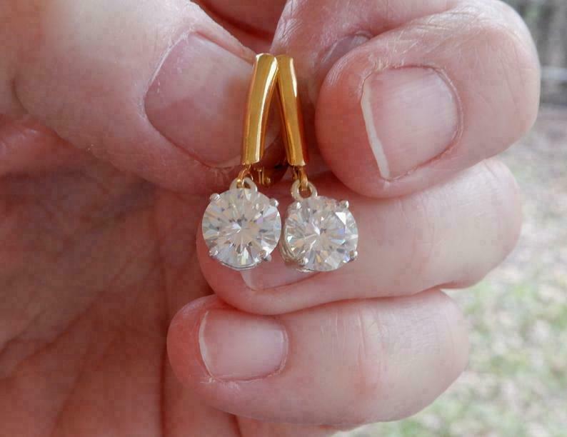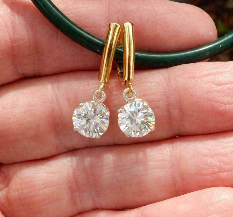 Halloween Spécial - 4Ct Moissanite Rond Boucles D'Oreilles 14k Finition or Jaune