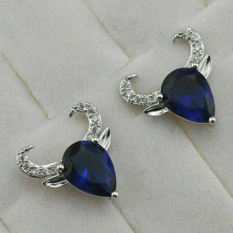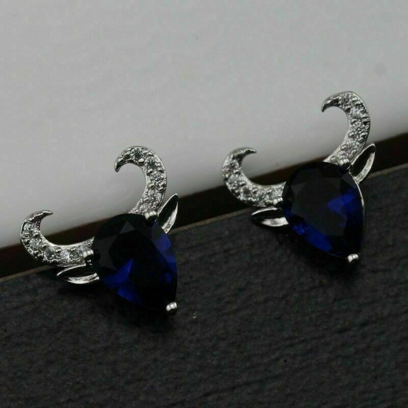 Halloween Spécial - 3Ct Poire Coupe Saphir Vache Corne Boucles 14k Blanc or Sur