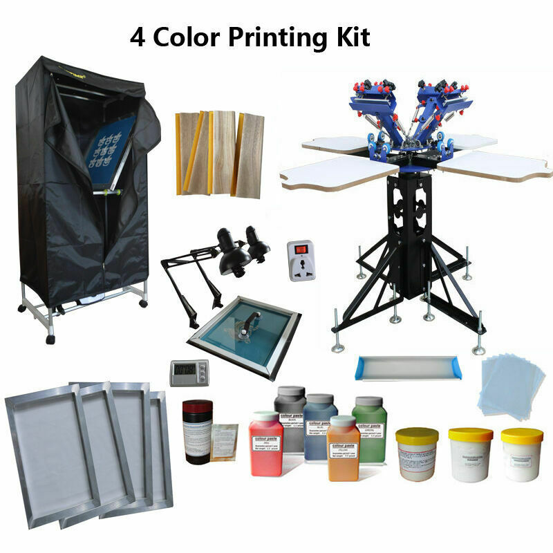 Full Set 4 Color 4 Station Exposure Drying Cabinet&Ink Screen Printing Press Kit