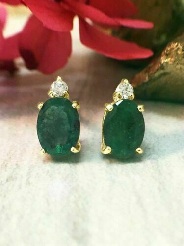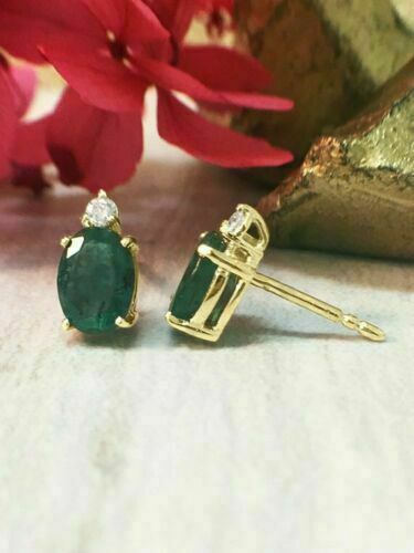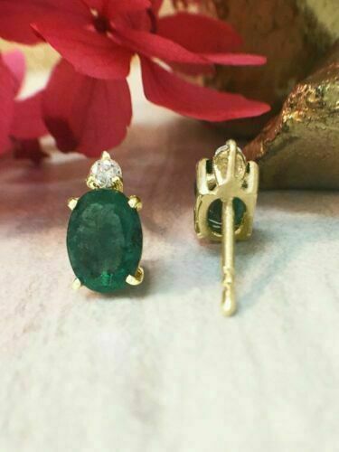 4.12Ct Oval Smaragd Schildkröte Solitaire Nieten Ohrringe 14K Gelbgold Finish
