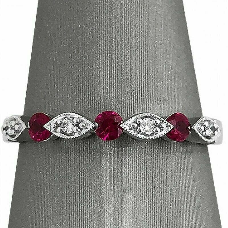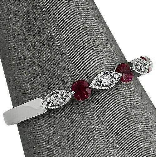 2Ct Corte Redondo Rubí y Diamante Estilo Vintage Alianza 14K Oro Blanco Acabado