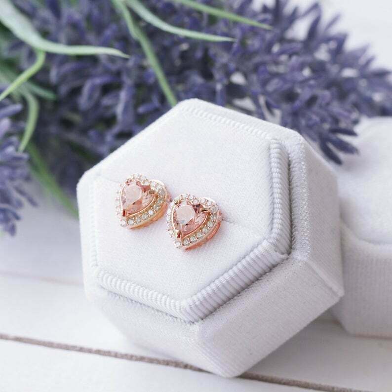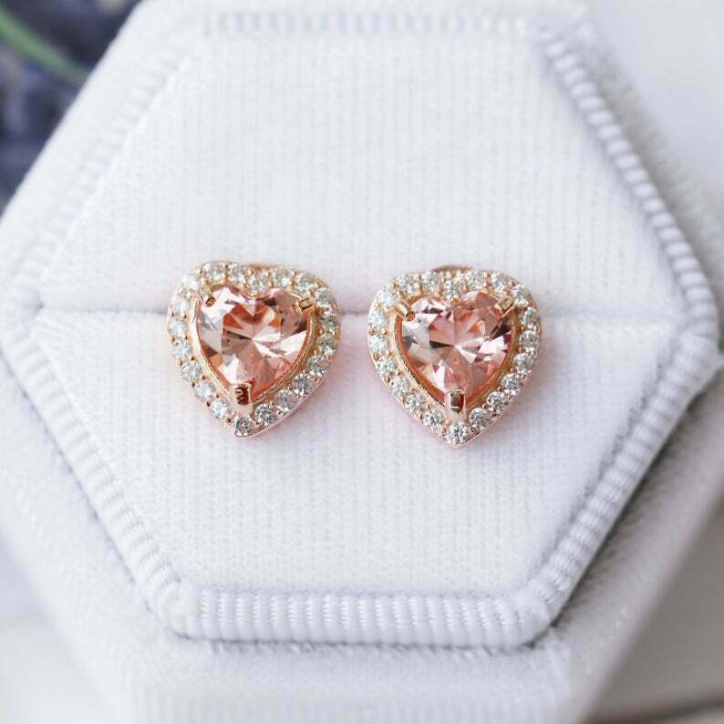 4Ct Coeur Brillant Coupe Morganite Halo Boucles D'Oreilles 14K Finition or Rose