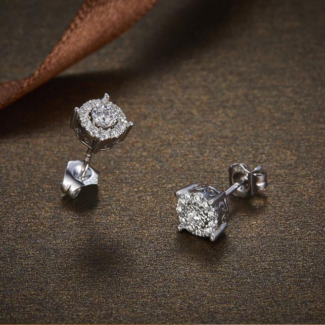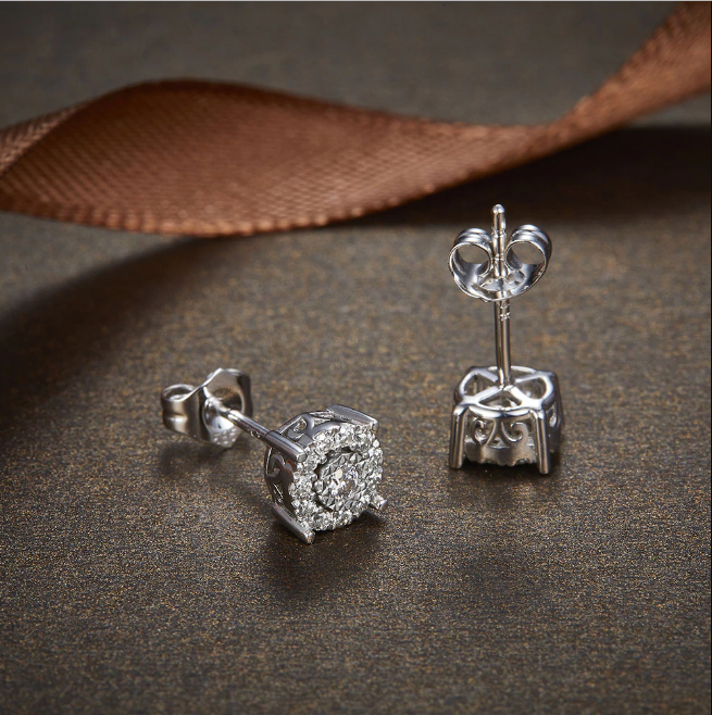 1.20Ct Taglio Rotondo VVS1 Diamante Halo Orecchini a Lobo 14K Oro Bianco Finire