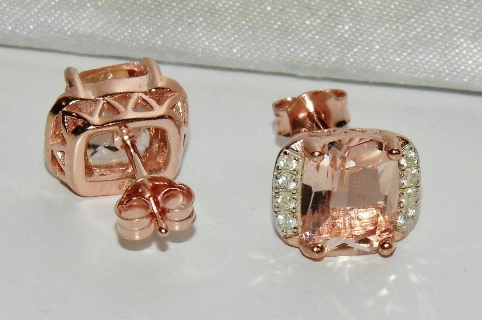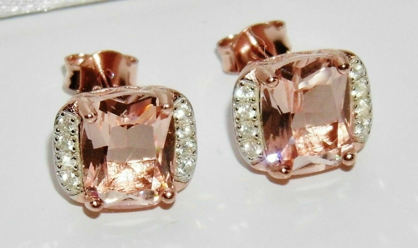 4Ct Morganita Y Diamante Pendientes de Presión En 14K Acabado de Oro Rosa