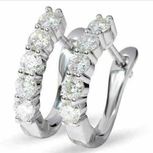 1.50Ct Corte Redondo D/VVS1 Diamante Pendientes Huggie 14K Oro Blanco Acabado