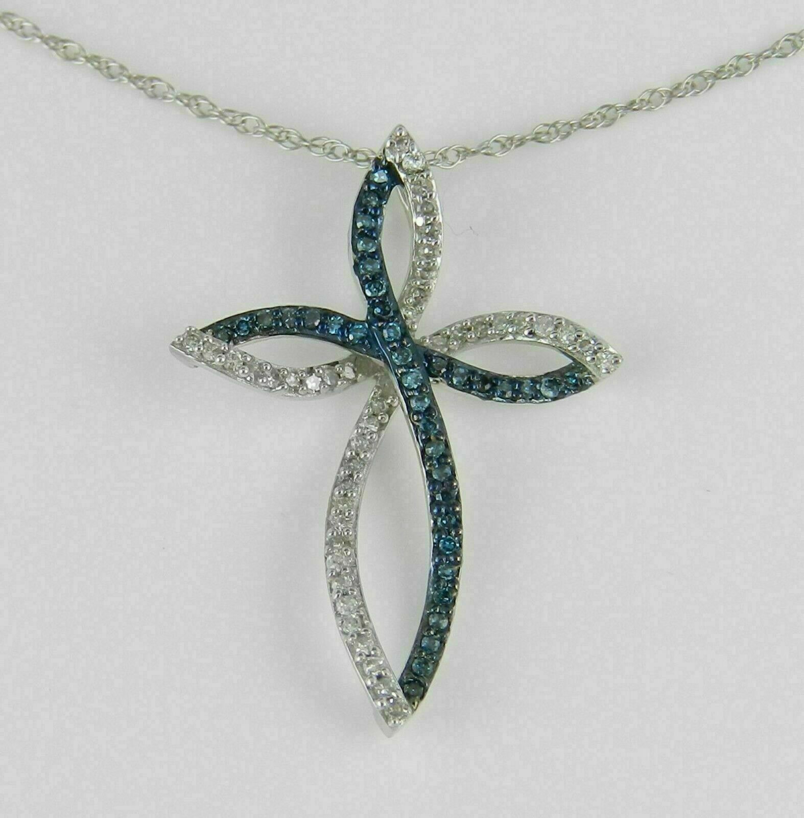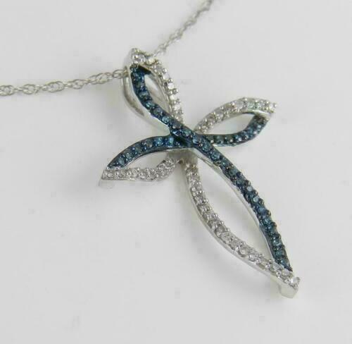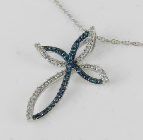 0.50CT Corte Redondo Zafiro Azul Cruz Colgante 14K Acabado en Oro Blanco Libre