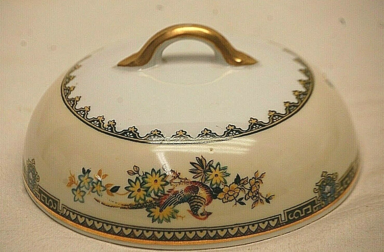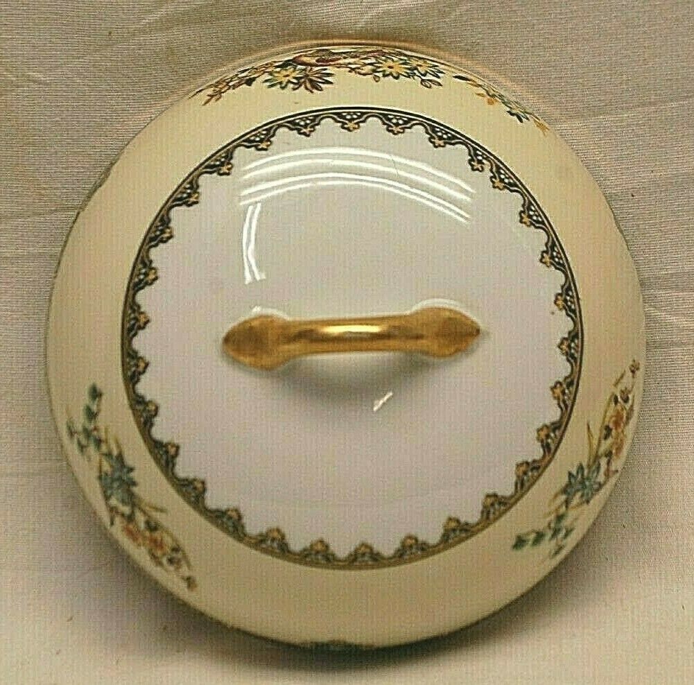 Sheila Noritake Lid for Round Butter Dish Tan Black Yellow Edge Birds c 1921