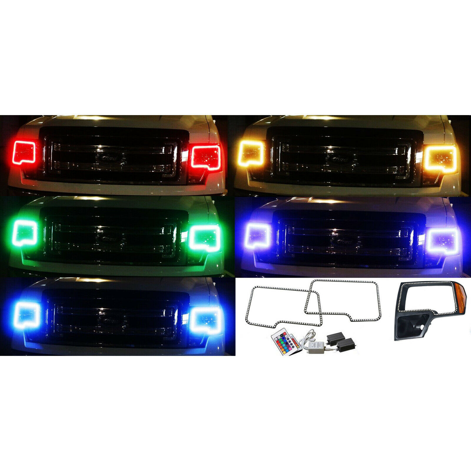 2009-2010-2011-2012-2013-2014 FORD F-150 PICK-UP TRUCK - OCTANE LIGHTING MULTI-COLOR RGB SMD HALO HEADLIGHT RING KIT