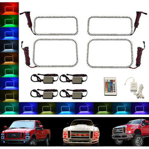08-10 Ford F-250 Multi-Color Changing Shift LED RGB Halo Headlight Rings Set IR