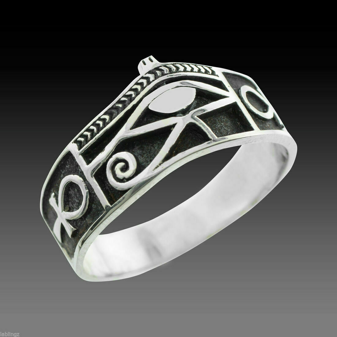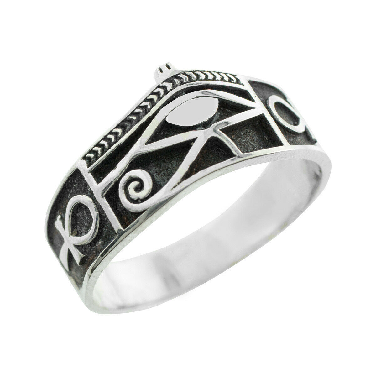 925 Sterling Silver Eye Of Horus Egyptian Ankh Ring Band