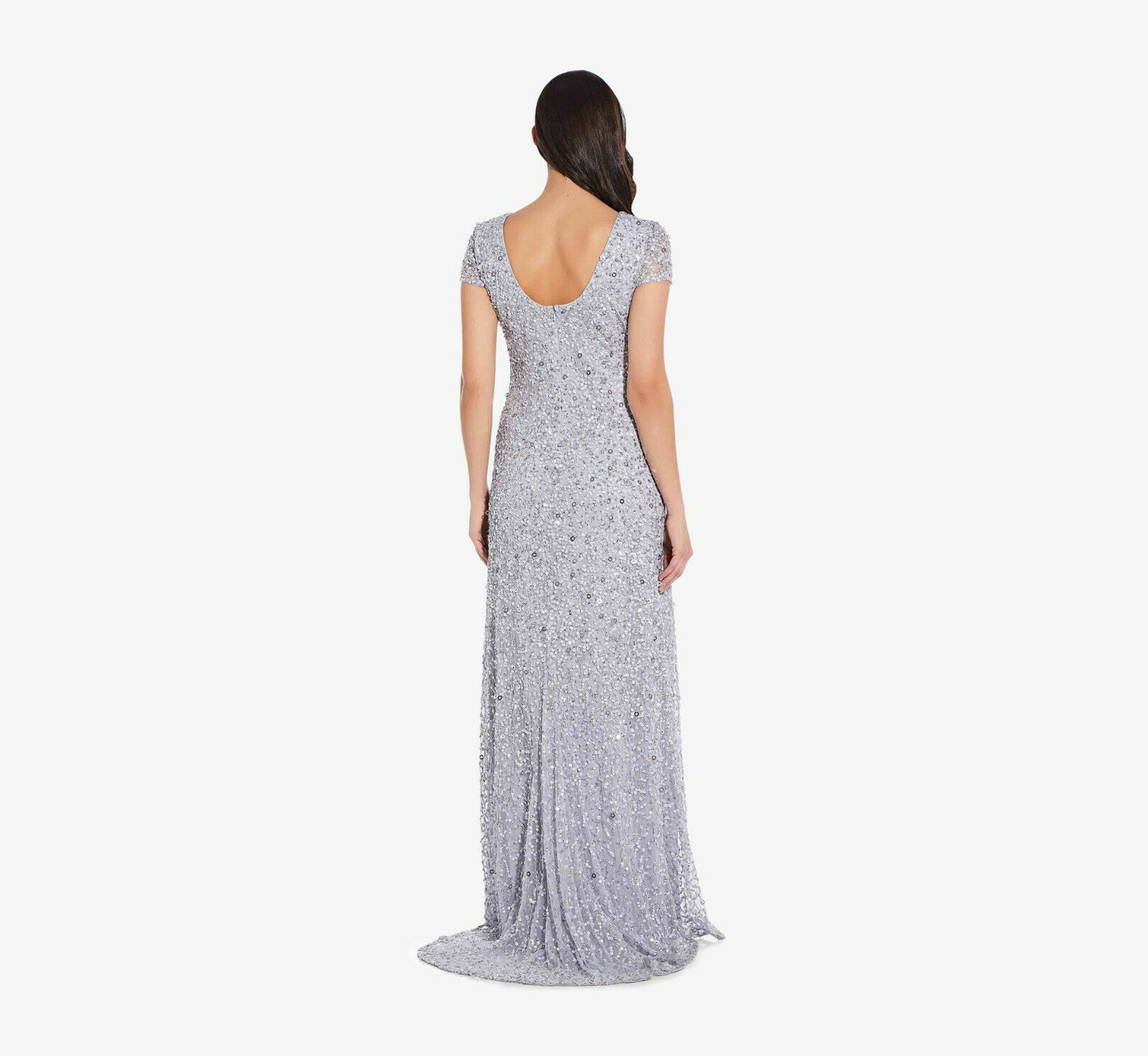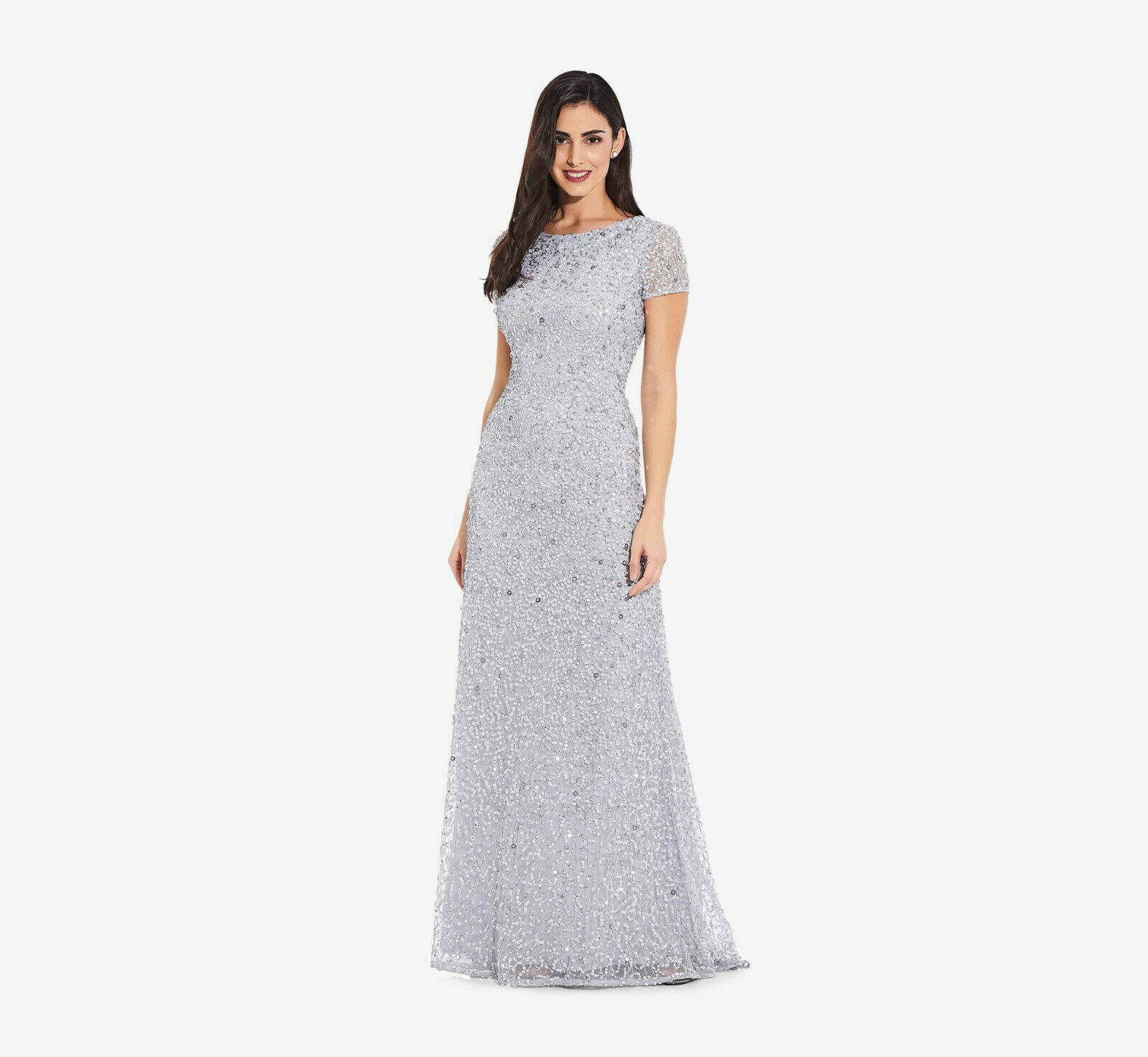 Adrianna Papell Women's Scoop Back Sequin Gown With Short Sleeves in Glacier 12