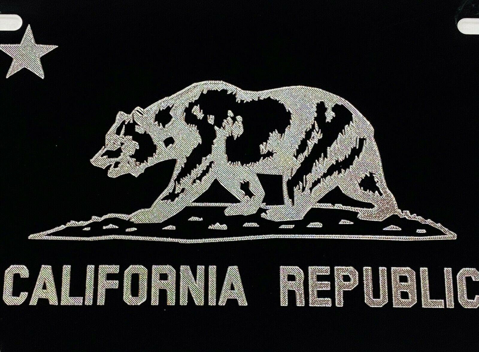 California Republic State Flag Diamond Etched Engraved License Plate Car Tag