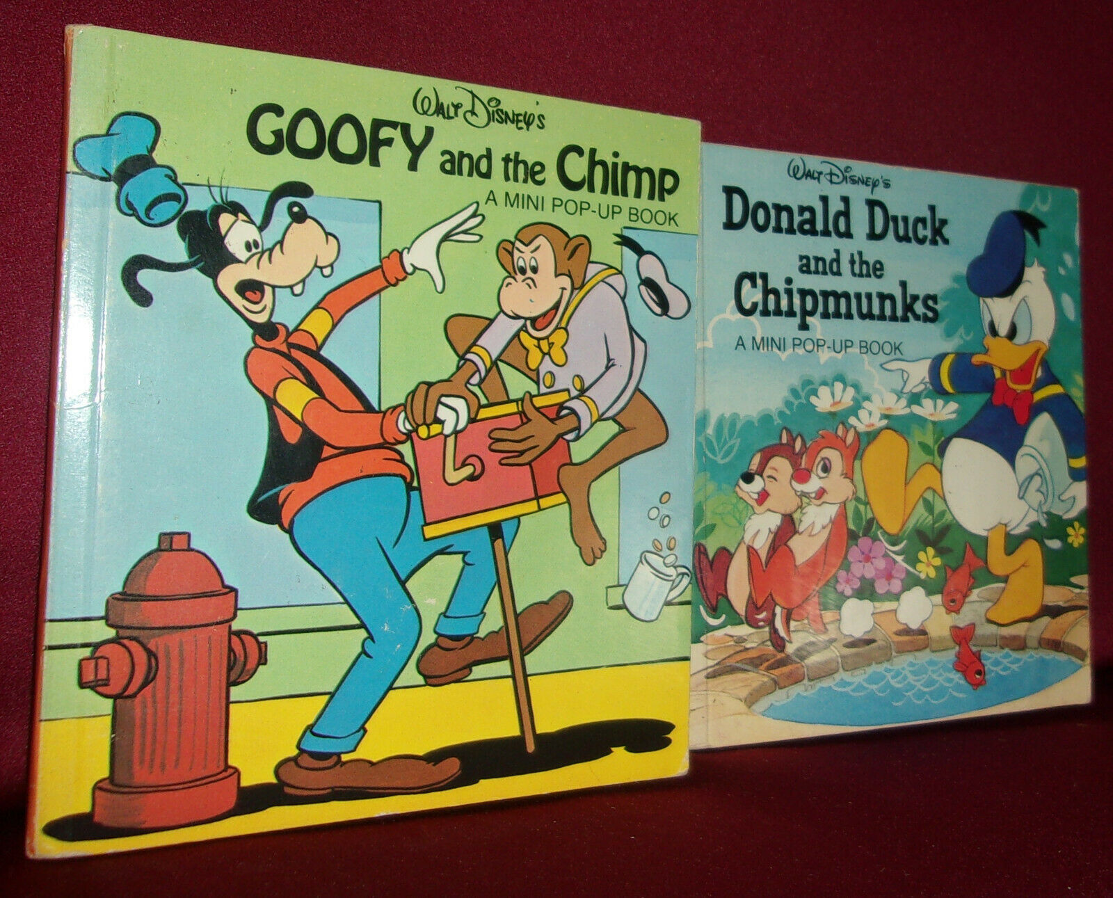 Walt Disney 2 Mini Pop-Up Books 1979-80 GOOFY & CHIMP DONALD DUCK & CHIPMUNKS HC