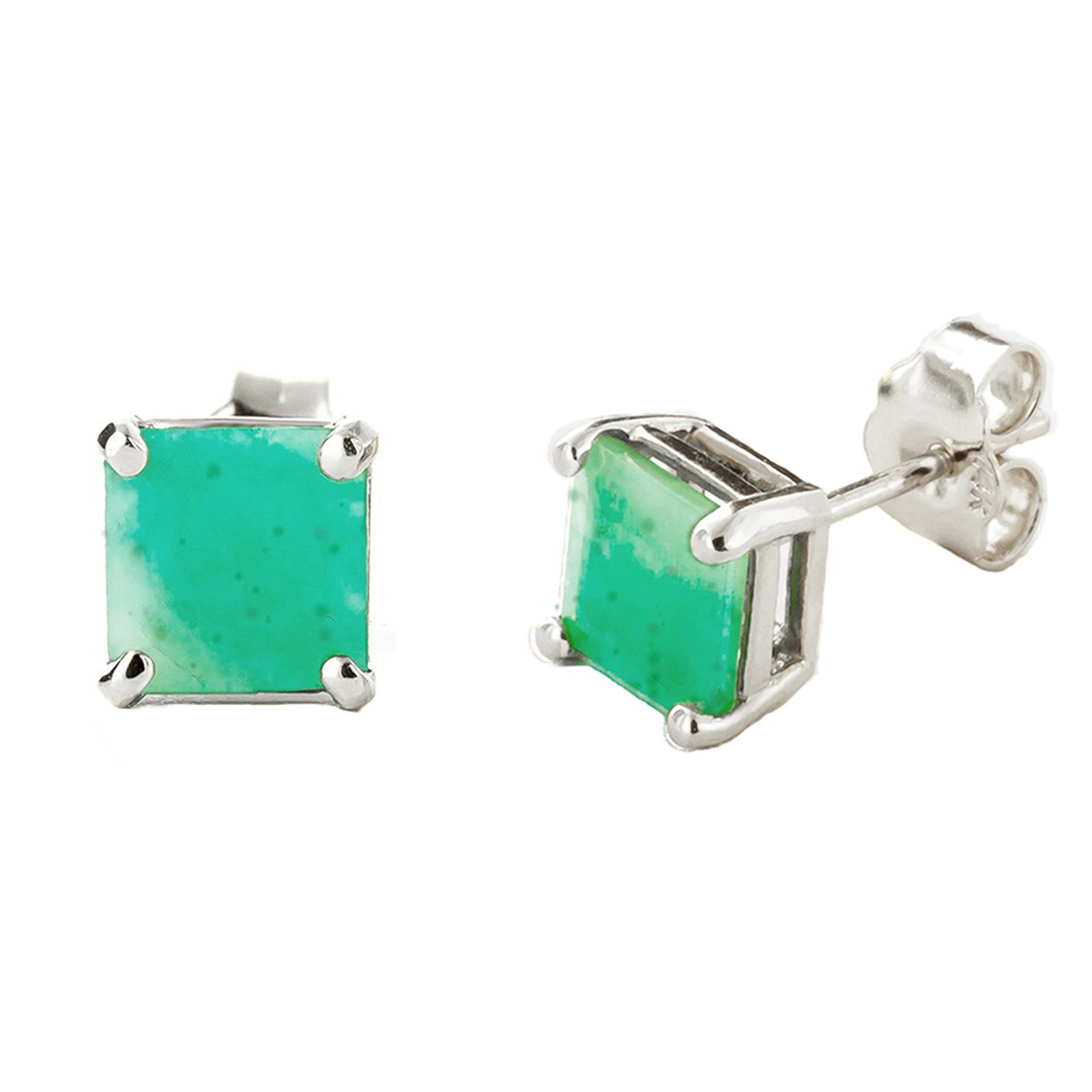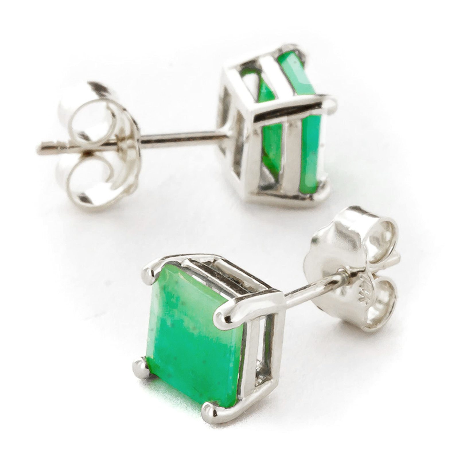 Galaxy Gold GG 14k Solid White Gold Stud Earrings with Natural Green Emerald