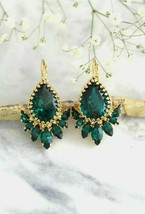 Halloween Especial - 6Ct Corte Pera Esmeralda Verde Pendientes 14K Oro Amarillo