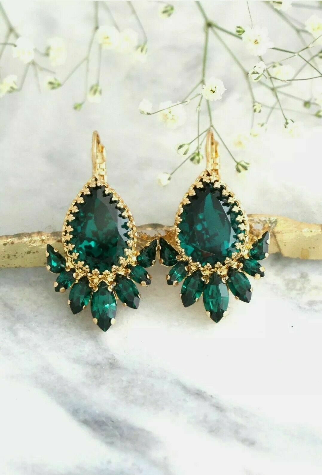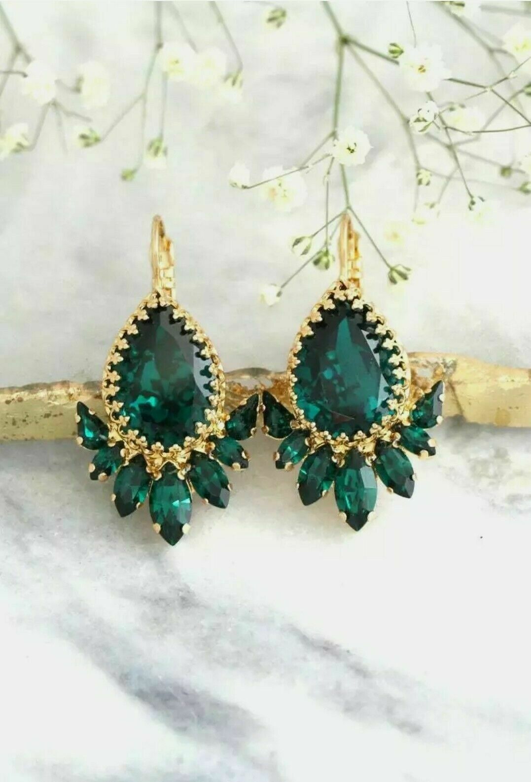 Halloween Spécial - 6Ct Poire Coupe Vert Émeraude Boucles 14K Finition or Jaune