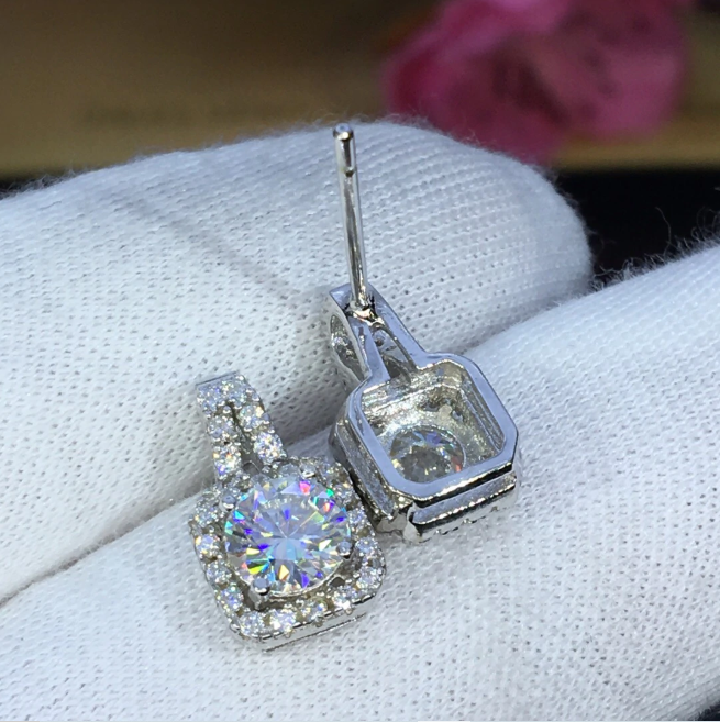 4.20Ct Rund Schliff Moissanit Halo Ohrstecker Ohrringe 14K Weißgold Finish