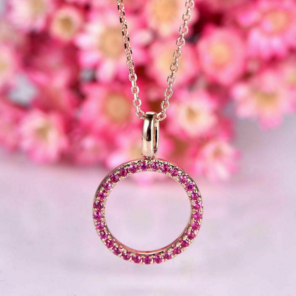 2Ct Corte Redondo Turmalina Rosa Colgante 14K Oro Acabado Con 45.7cm Sin Cadena